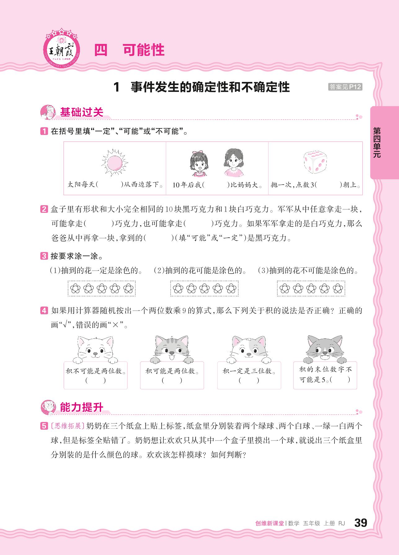2024秋上册五年级数学人教版 第四单元 可能性——1. 事件发生的确定性和不确定性