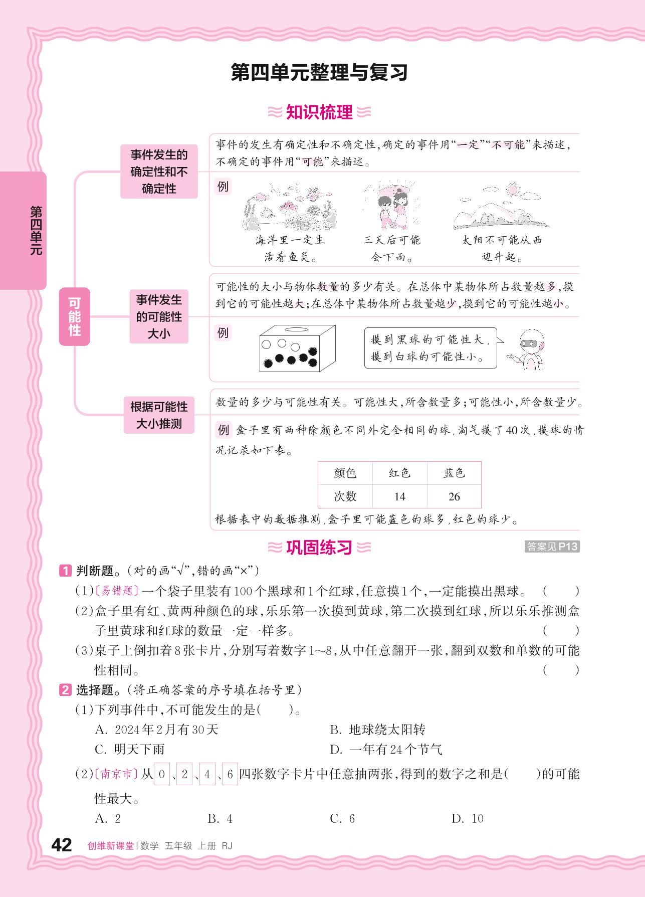 2024秋上册五年级数学人教版 第四单元整理与复习