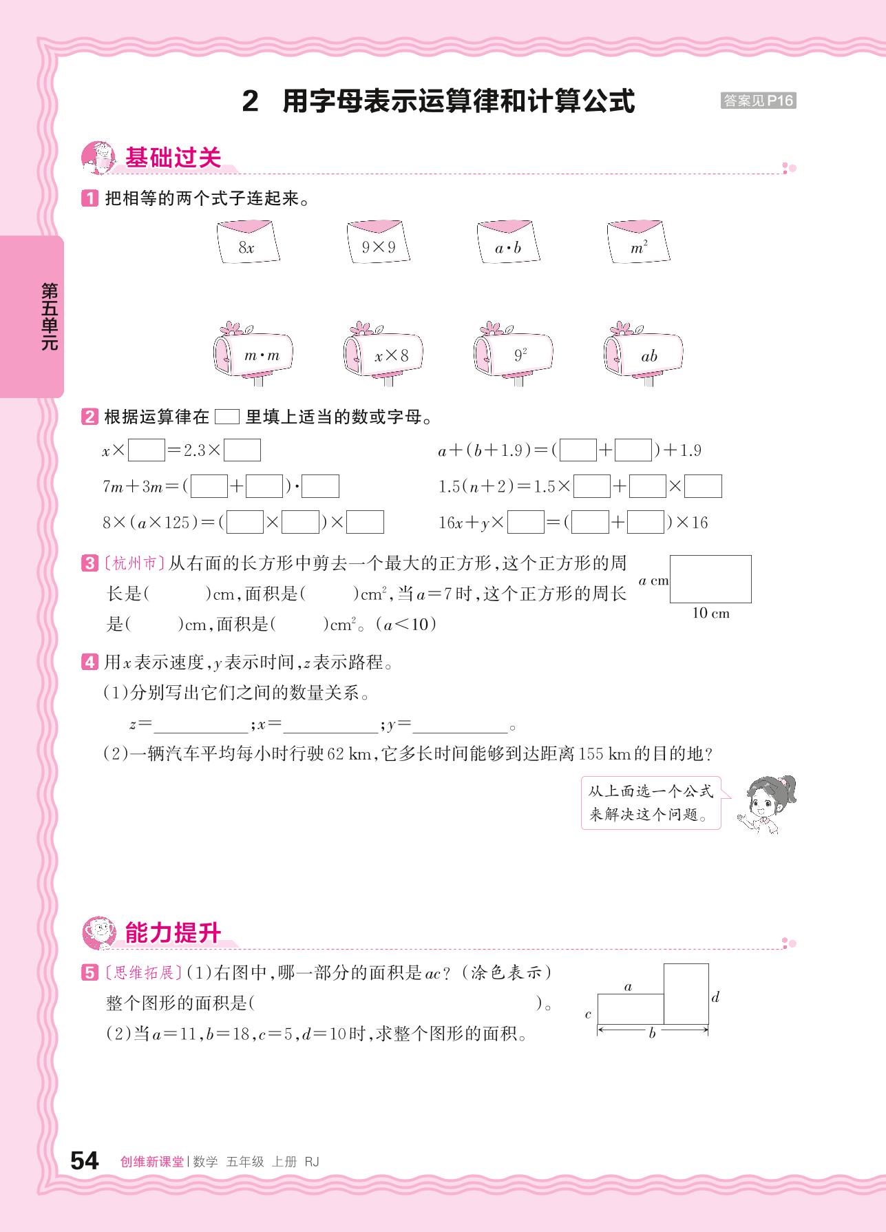 2024秋上册五年级数学人教版 第五单元 简易方程——2. 用字母表示运算律和计算公式