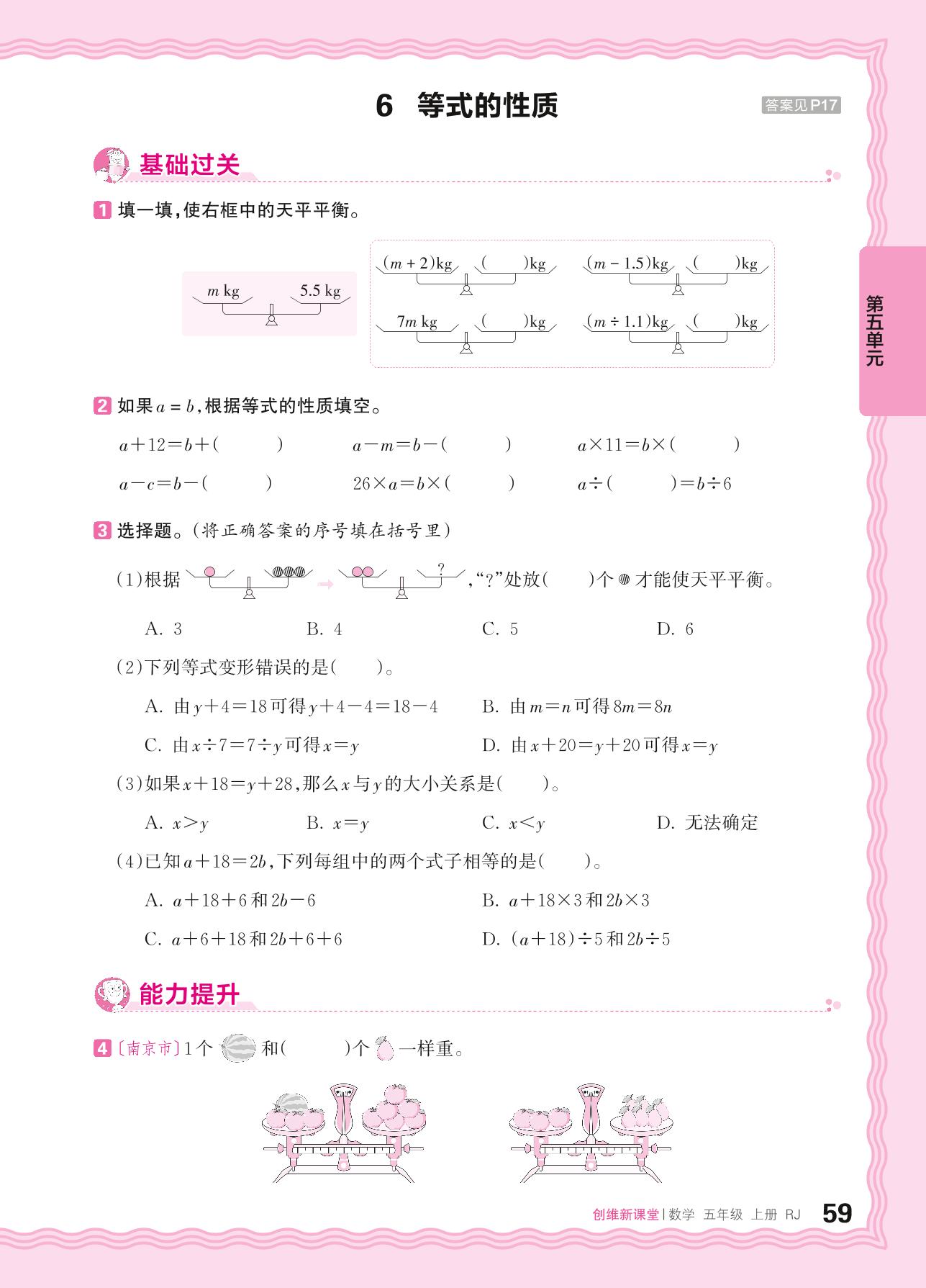 2024秋上册五年级数学人教版 第五单元 简易方程——6. 等式的性质