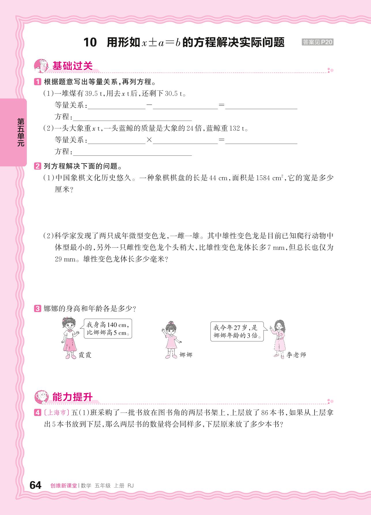 2024秋上册五年级数学人教版 第五单元 简易方程——10. 用形如x±a=b的方程解决实际问题