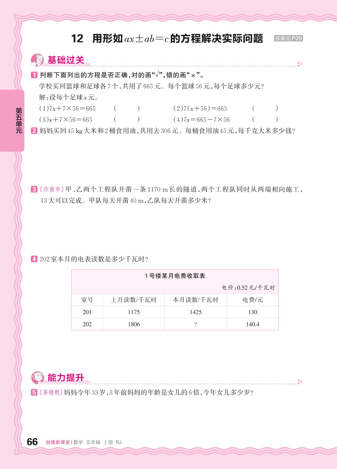 2024秋上册五年级数学人教版 第五单元 简易方程——12. 用形如ax±ab=c的方程解决实际问题