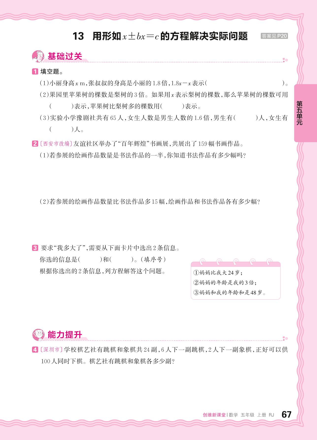 2024秋上册五年级数学人教版 第五单元 简易方程——13. 用形如x±bx=c的方程解决实际问题