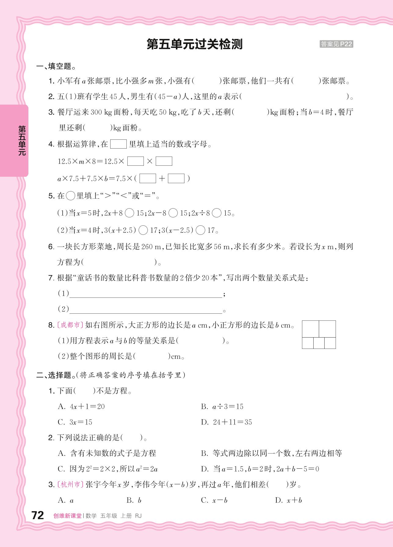 五年级数学人教版上册单元卷
