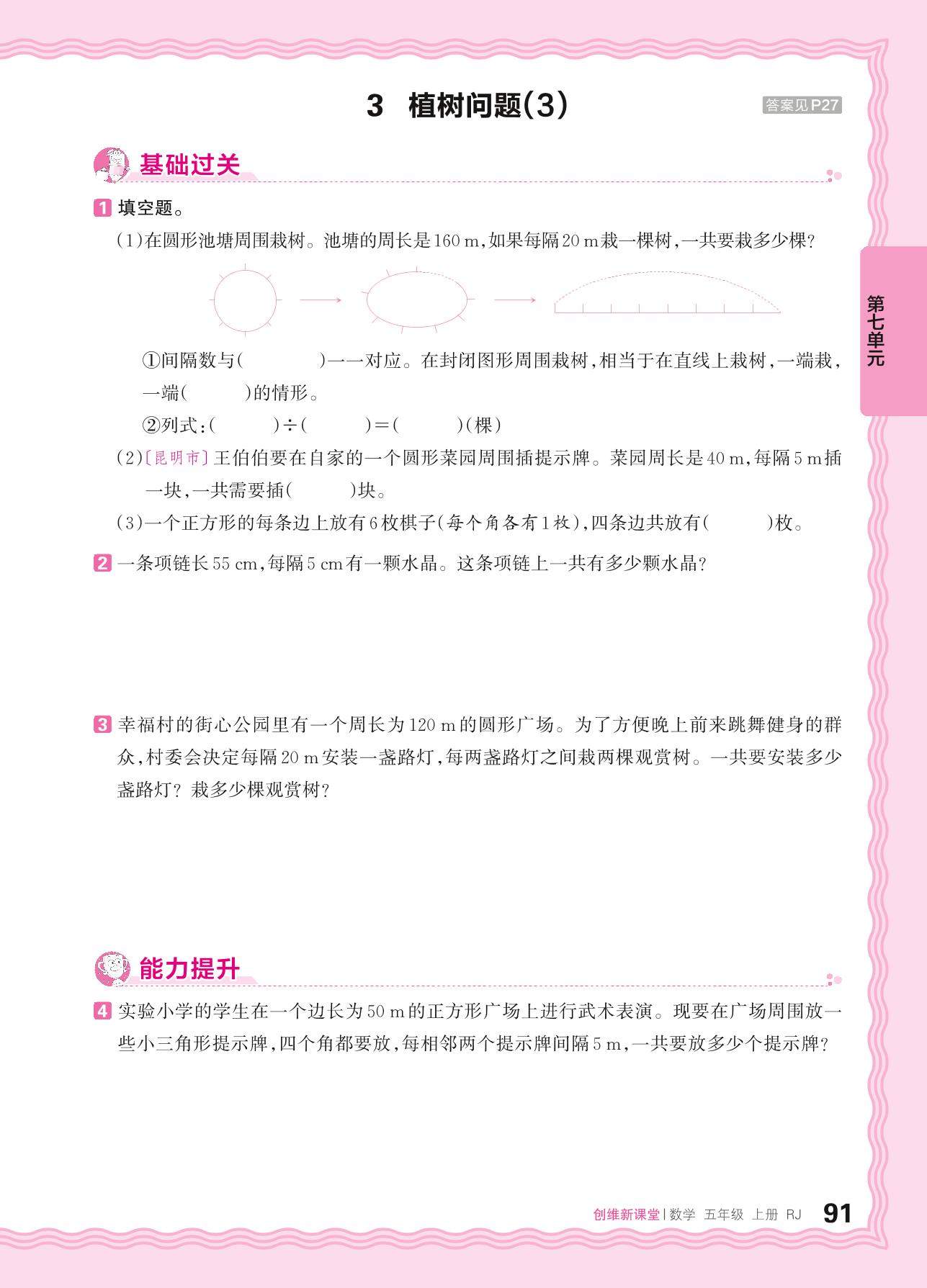 2024秋上册五年级数学人教版 第七单元 数学广角 植树问题——3. 植树问题(3)