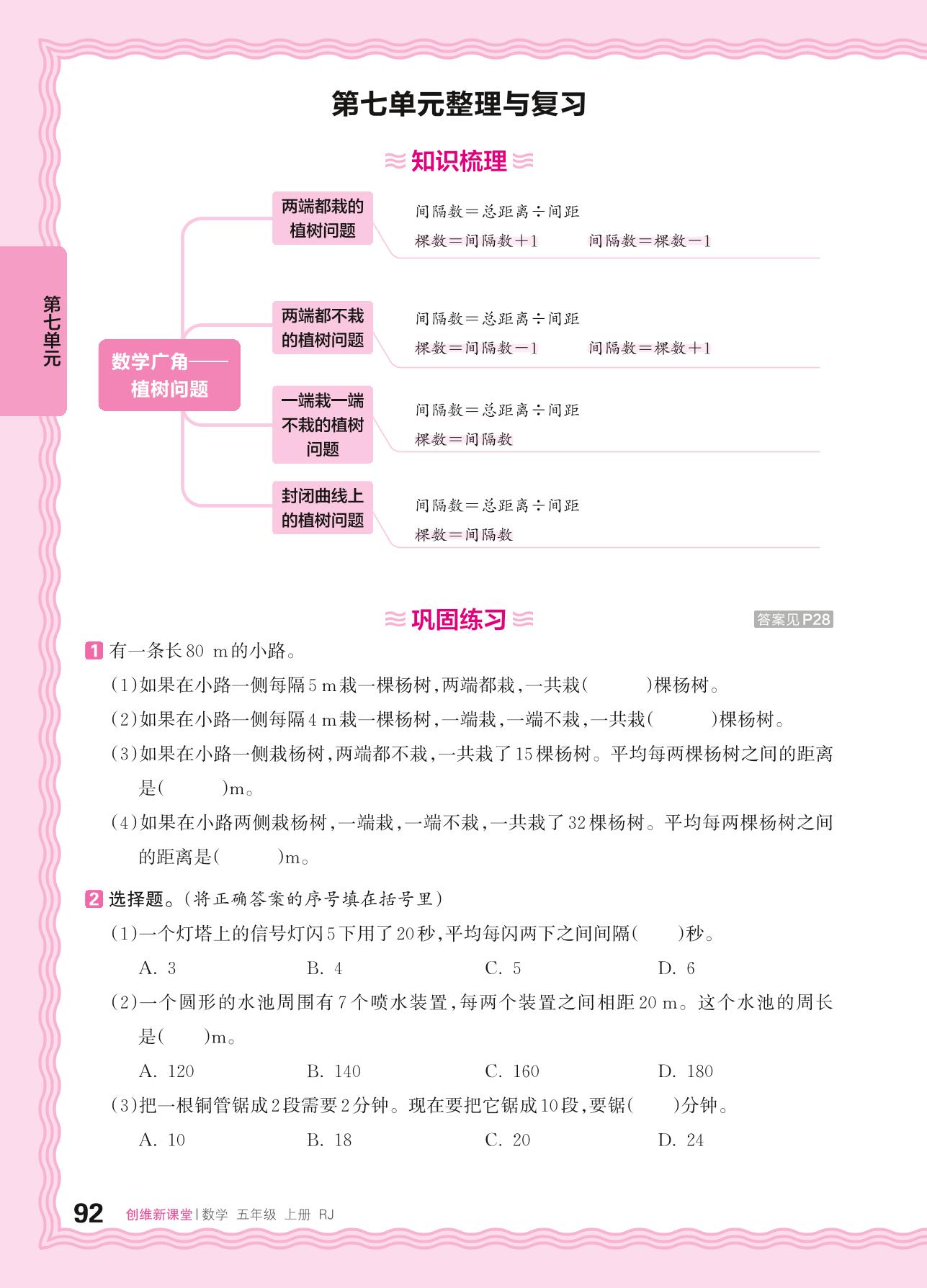 2024秋上册五年级数学人教版 第七单元整理与复习