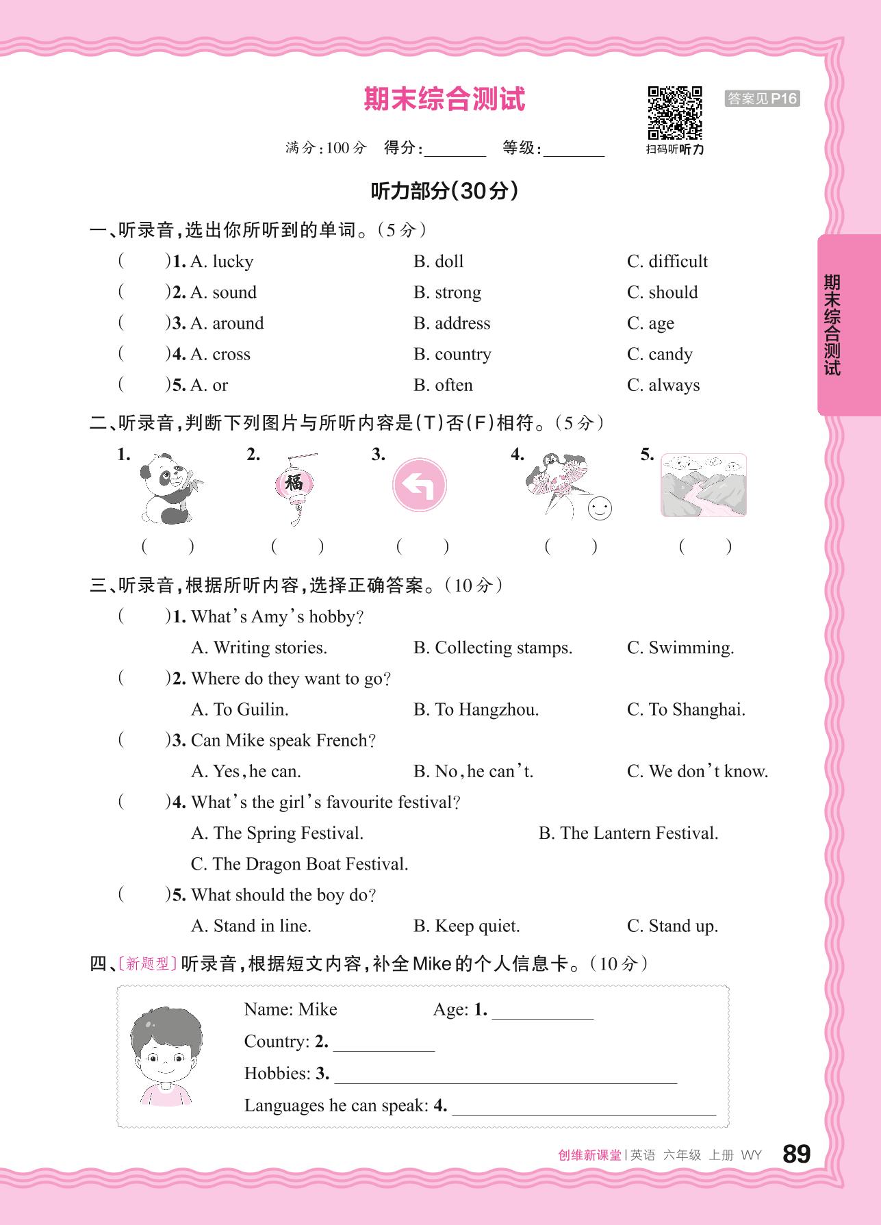 2024秋上册六年级英语外研版(三起始) 期末综合测试