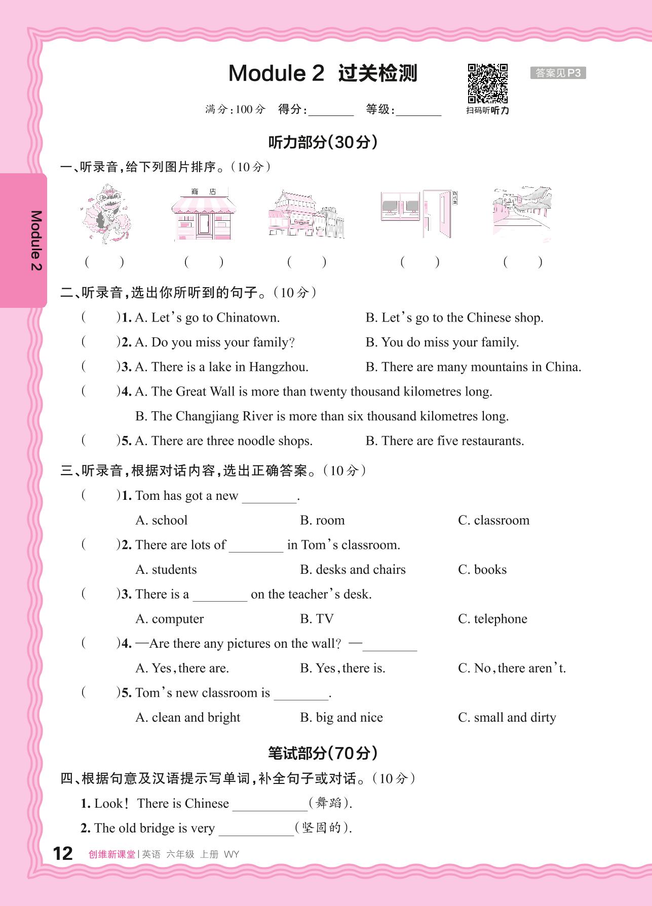 2024秋上册六年级英语外研版(三起始) Module 2 过关检测