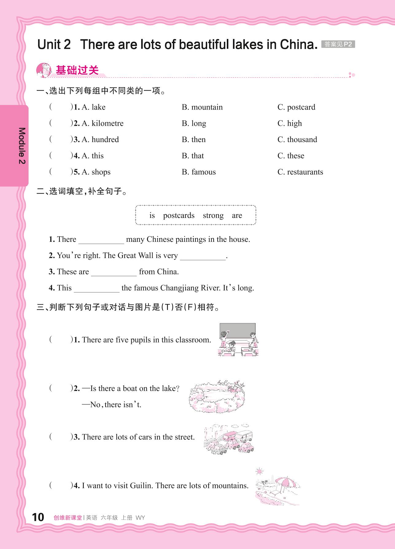 2024秋上册六年级英语外研版(三起始) Module 2—Unit 2 There are lots of beautiful lakes in China.