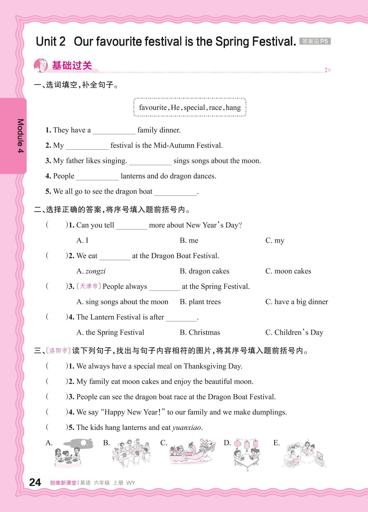 2024秋上册六年级英语外研版(三起始) Module 4—Unit 2 Our favourite festival is the Spring Festival.