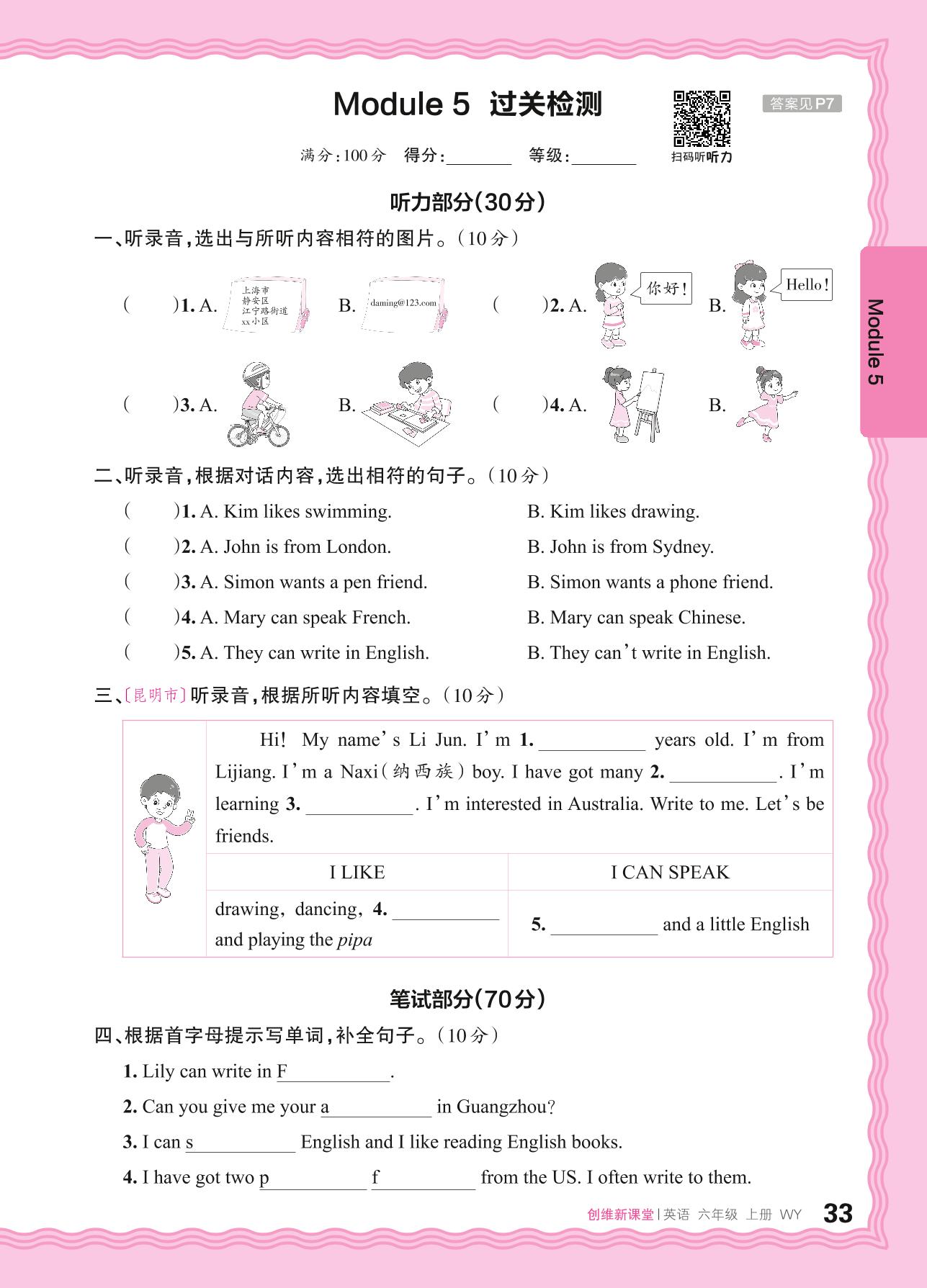 2024秋上册六年级英语外研版(三起始) Module 5 过关检测