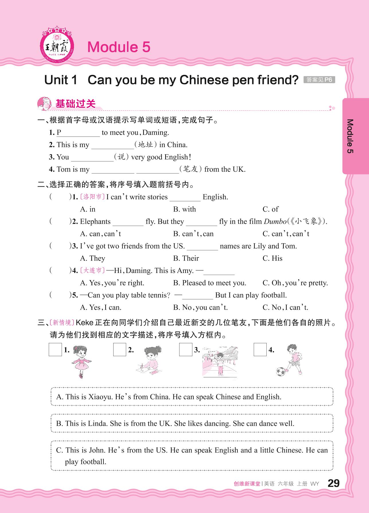 2024秋上册六年级英语外研版(三起始) Module 5—Unit 1 Can you be my Chinese pen friend?