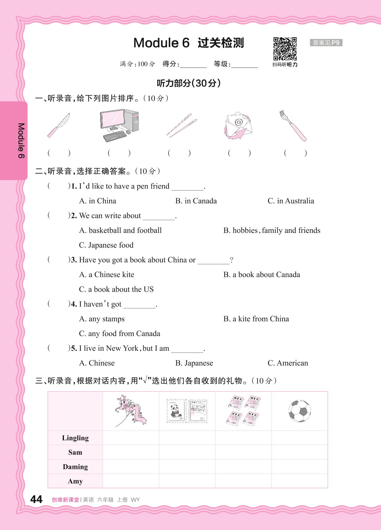 2024秋上册六年级英语外研版(三起始) Module 6 过关检测