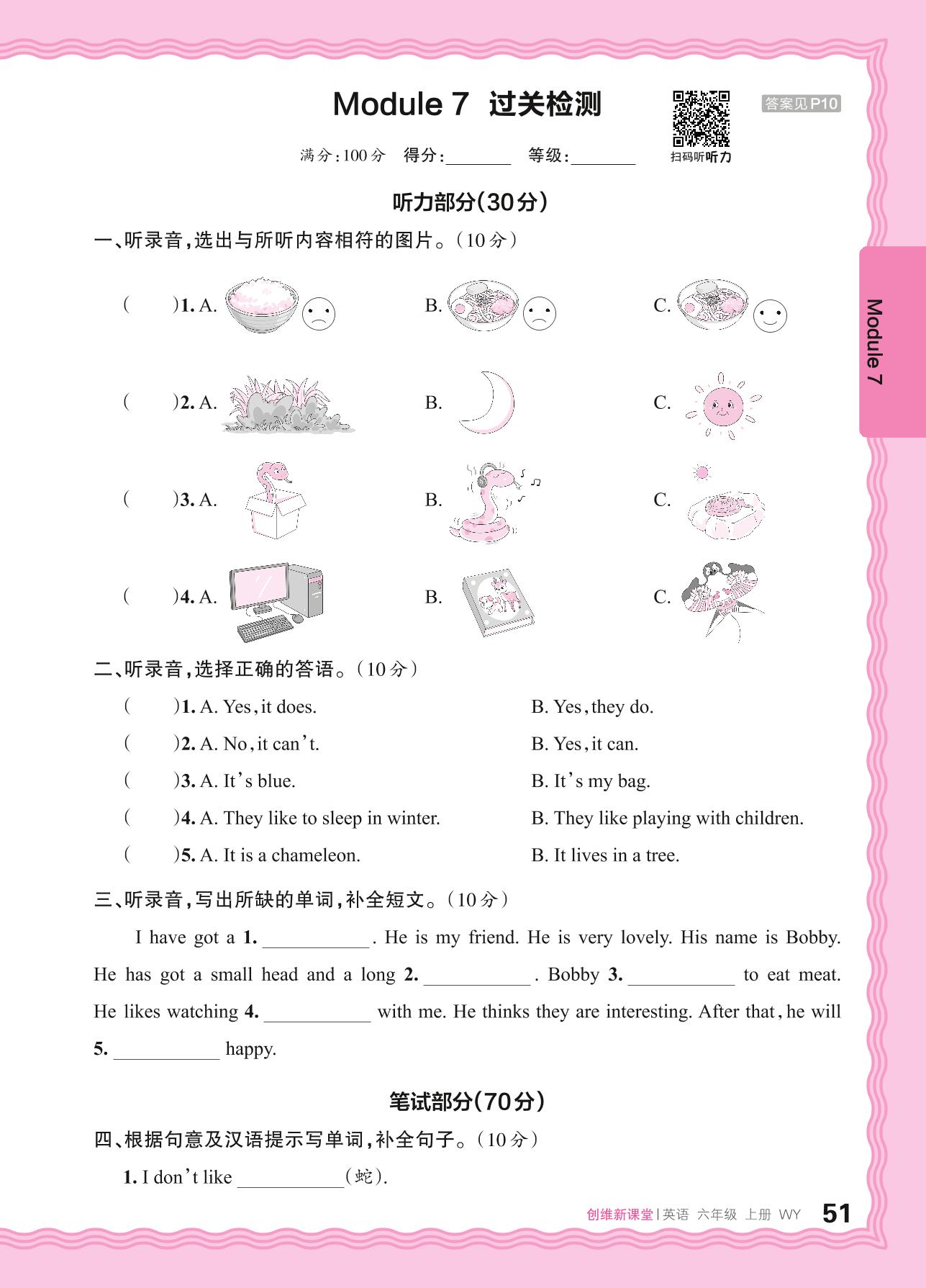 2024秋上册六年级英语外研版(三起始) Module 7 过关检测