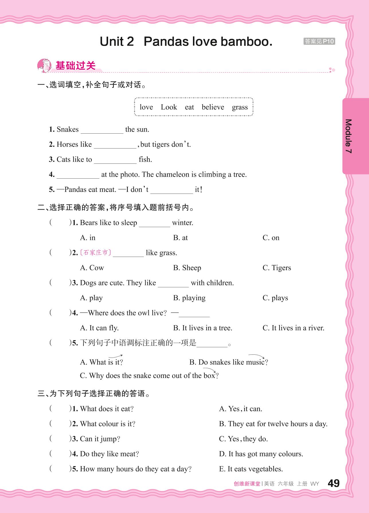2024秋上册六年级英语外研版(三起始) Module 7—Unit 2 Pandas love bamboo.
