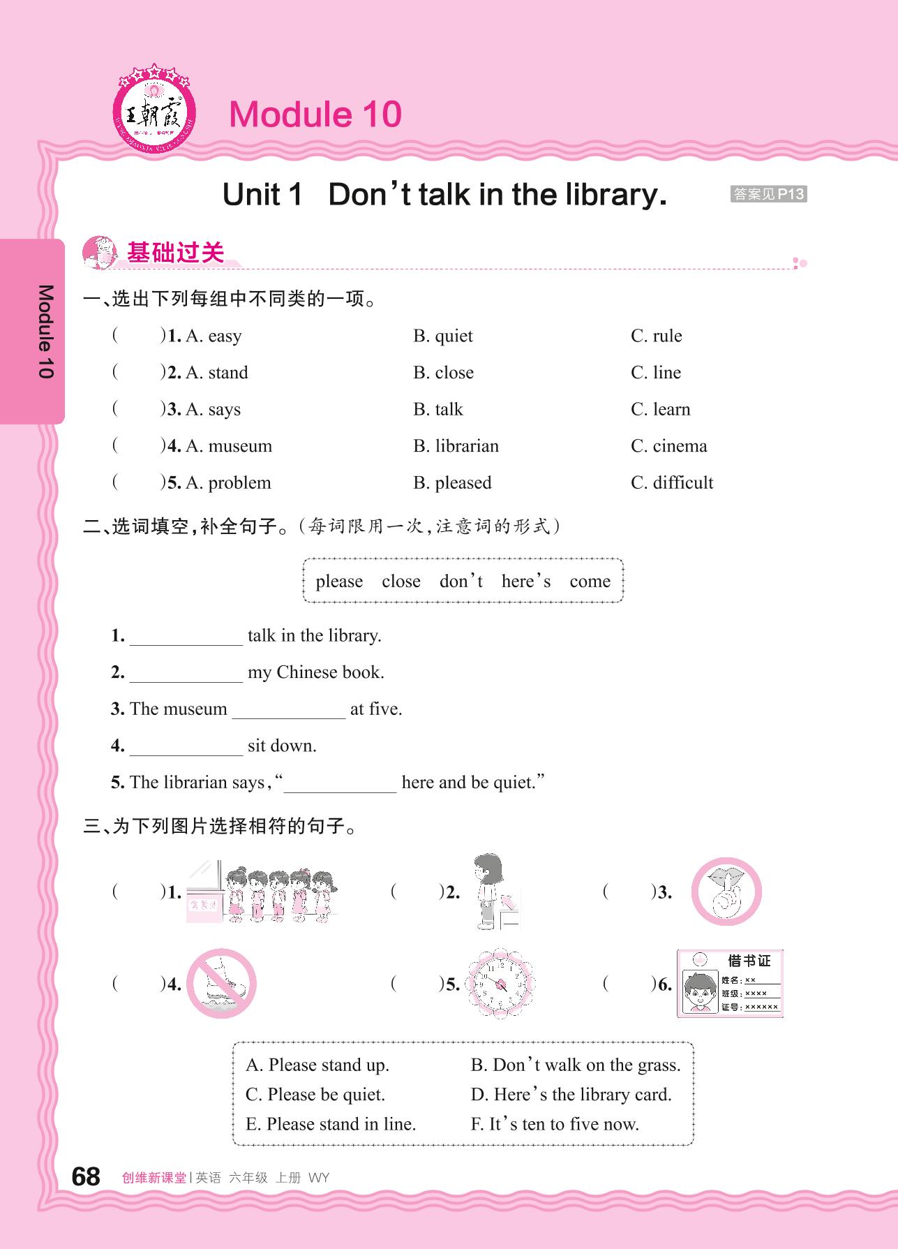2024秋上册六年级英语外研版(三起始) Module 10—Unit 1 Don't talk in the library.