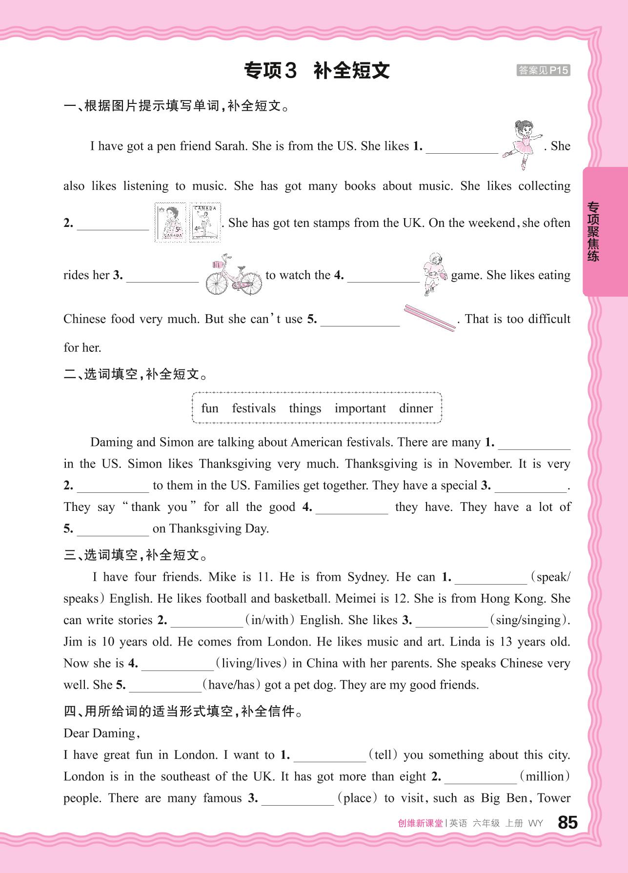 2024秋上册六年级英语外研版(三起始) 期末专项聚焦练——补全短文【3】