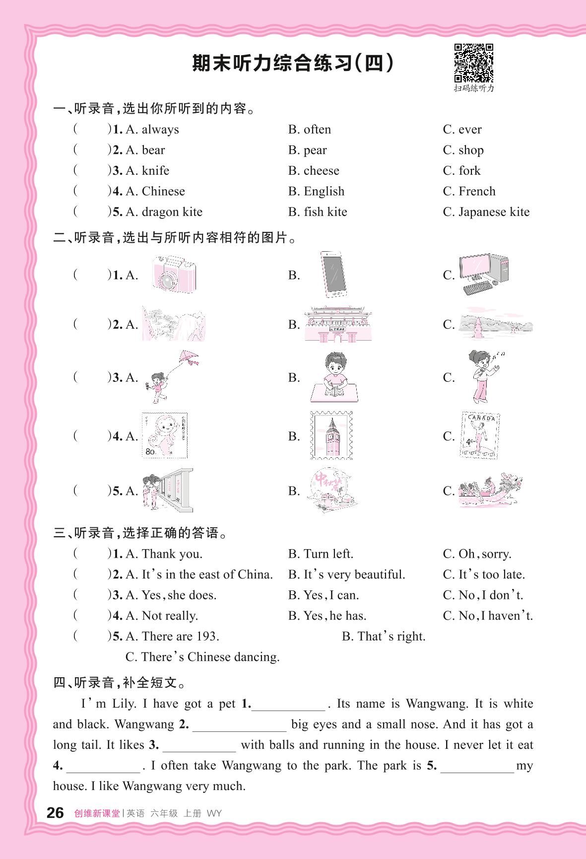 2024秋上册六年级英语外研版(三起始) 期末听力综合练习(四)