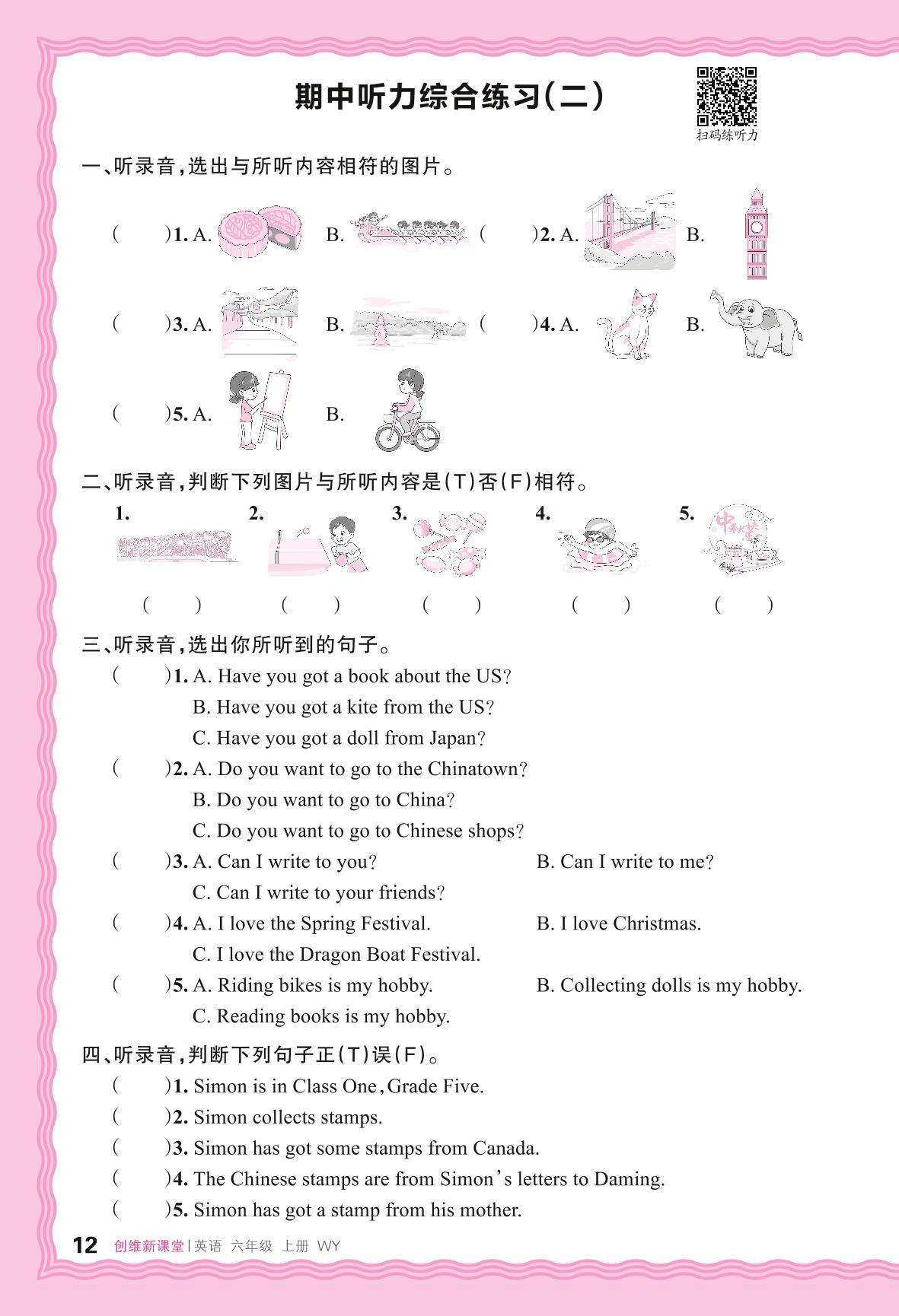 2024秋上册六年级英语外研版(三起始) 期中听力综合练习(二)
