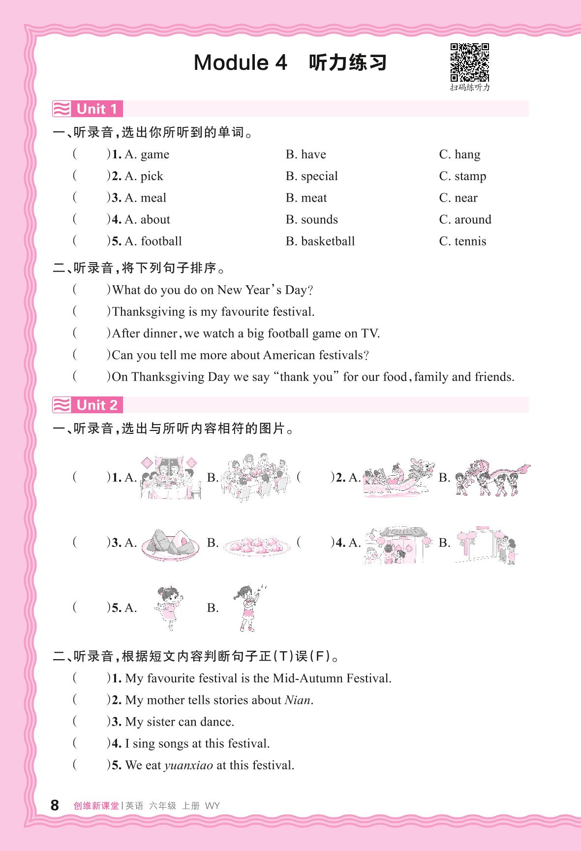 2024秋上册六年级英语外研版(三起始) Module 4 听力练习