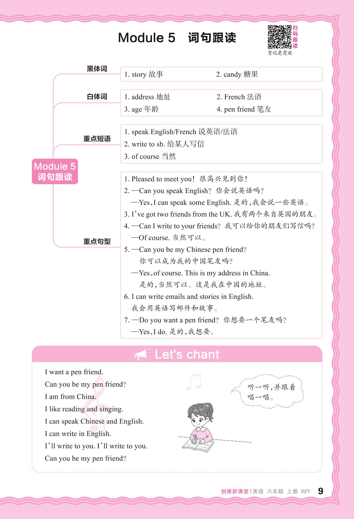 2024秋上册六年级英语外研版(三起始) Module 5 词句跟读