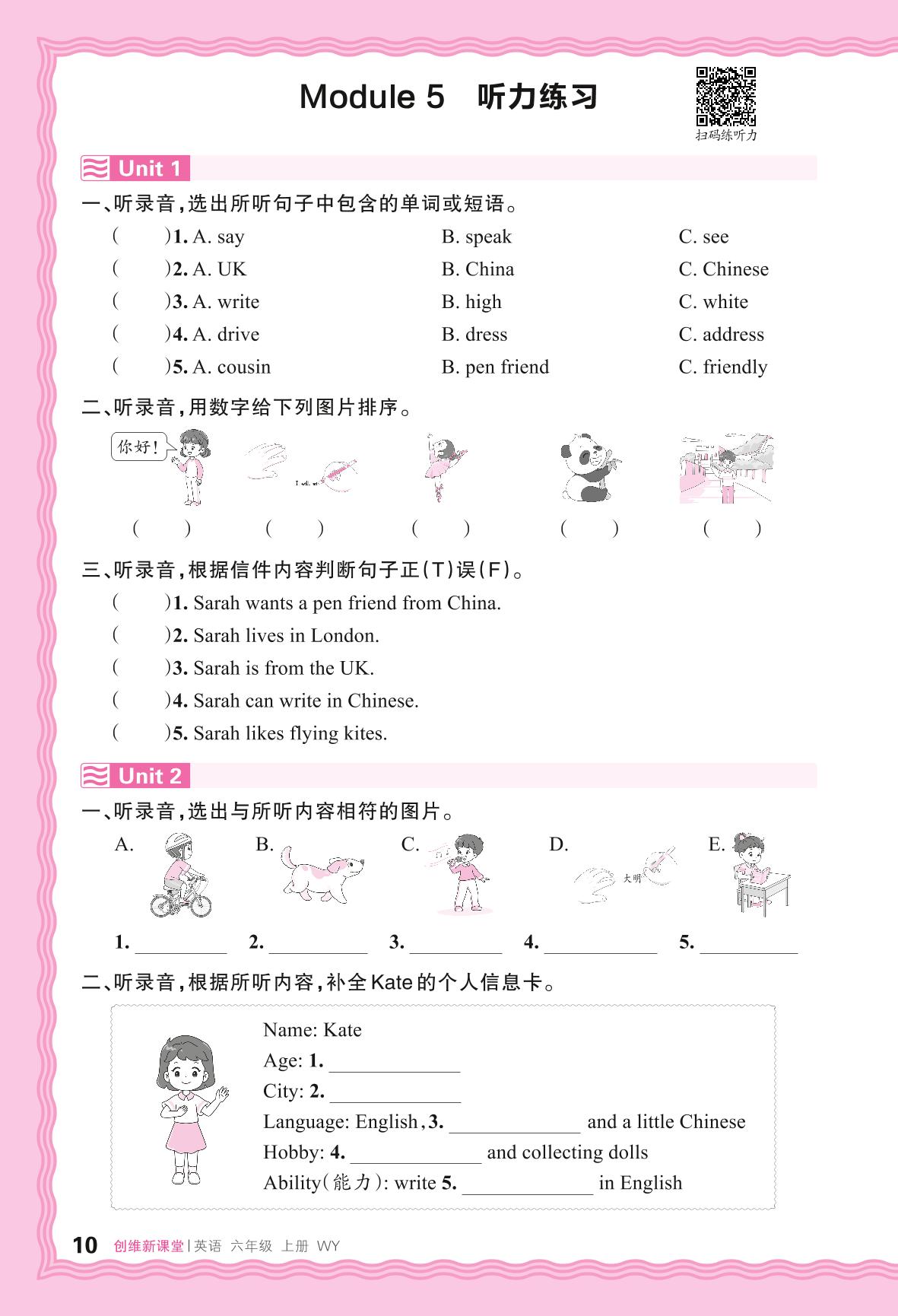2024秋上册六年级英语外研版(三起始) Module 5 听力练习
