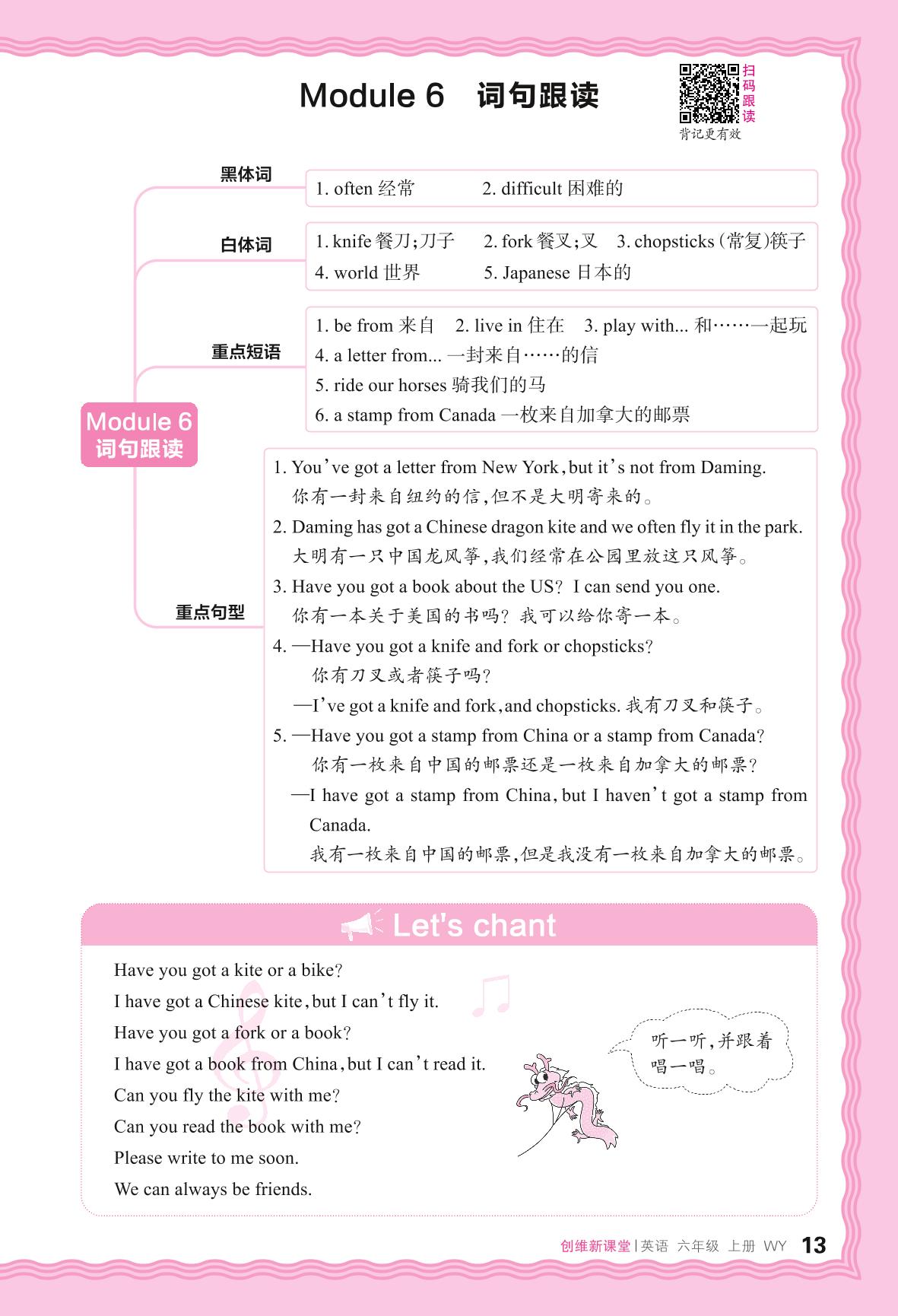 2024秋上册六年级英语外研版(三起始) Module 6 词句跟读