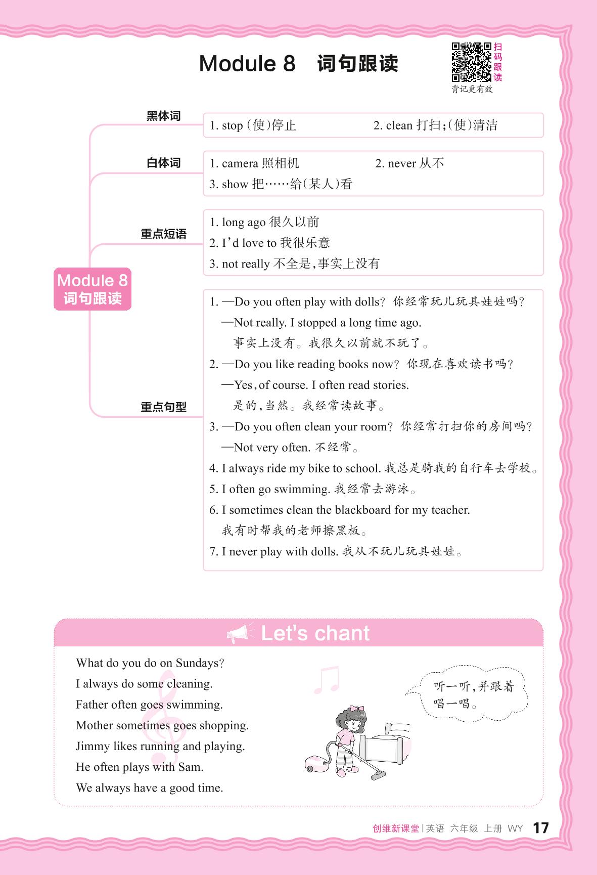 2024秋上册六年级英语外研版(三起始) Module 8 词句跟读