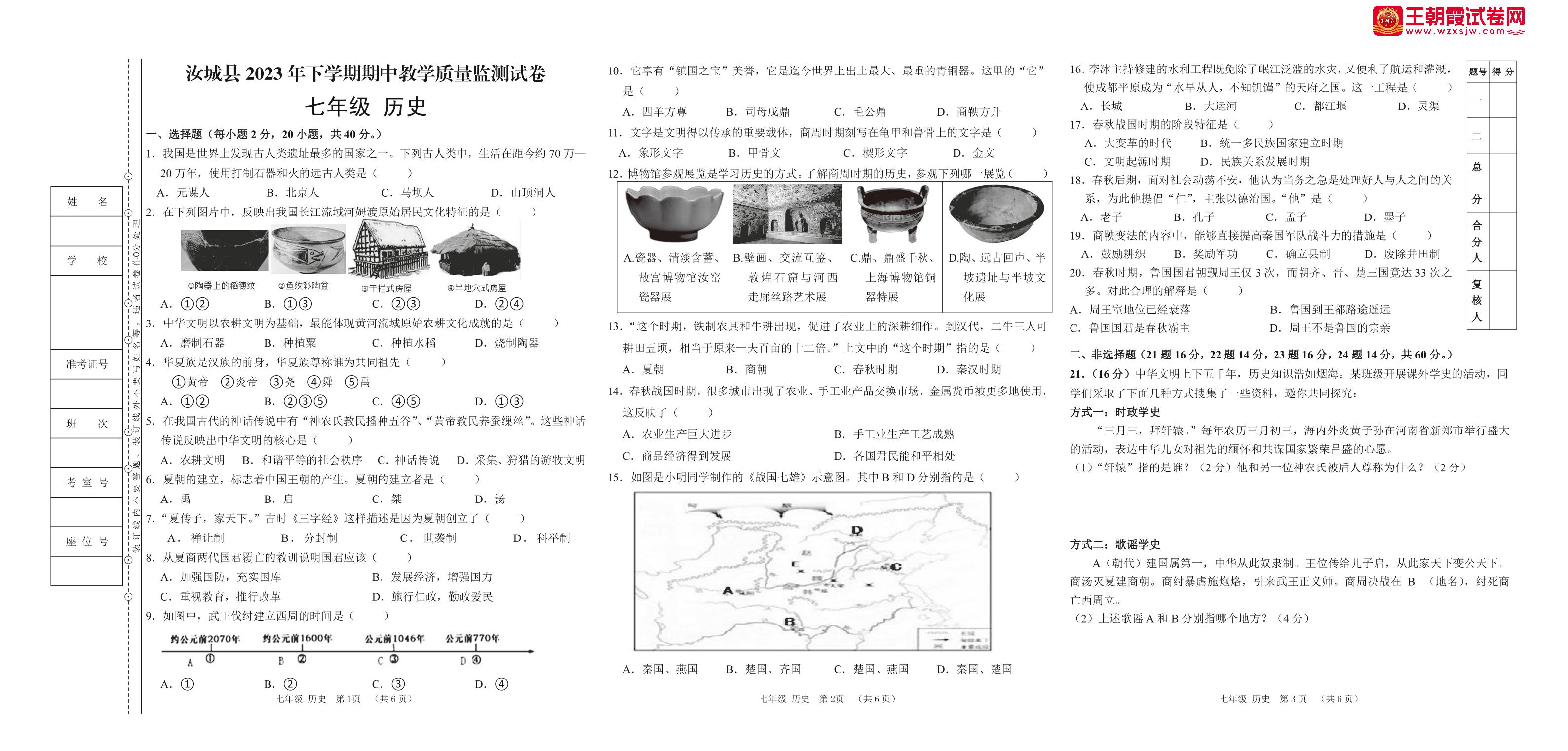 七年级历史人教版上册期中卷