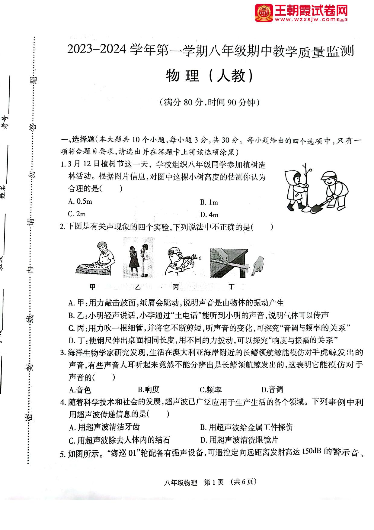 山西省临汾市兴国实验学校2023-2024学年第一学期期中教学质量监测八年级物理(人教版)