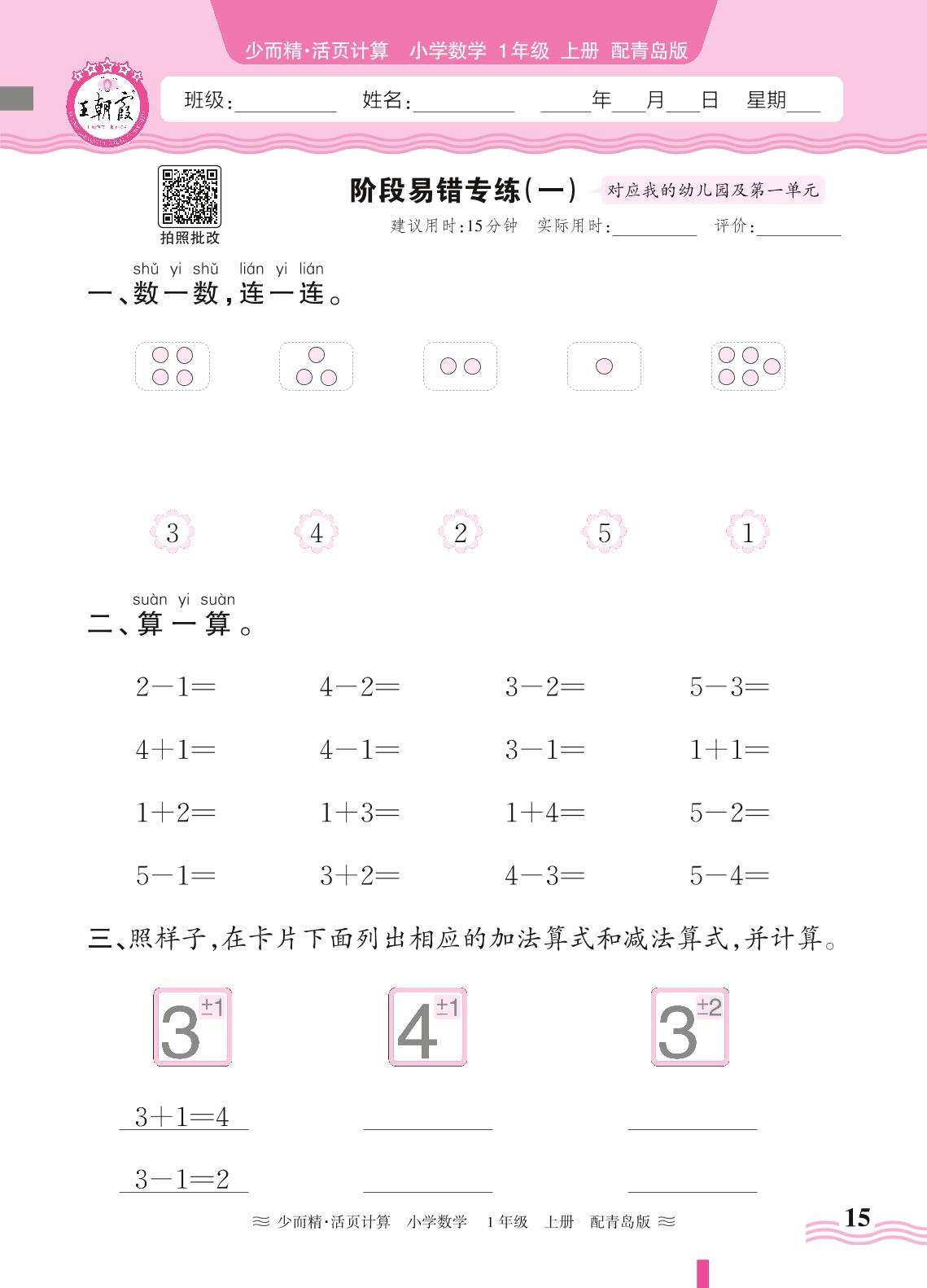 2024秋上册一年级数学青岛版 我的幼儿园及第一单元 阶段易错专练