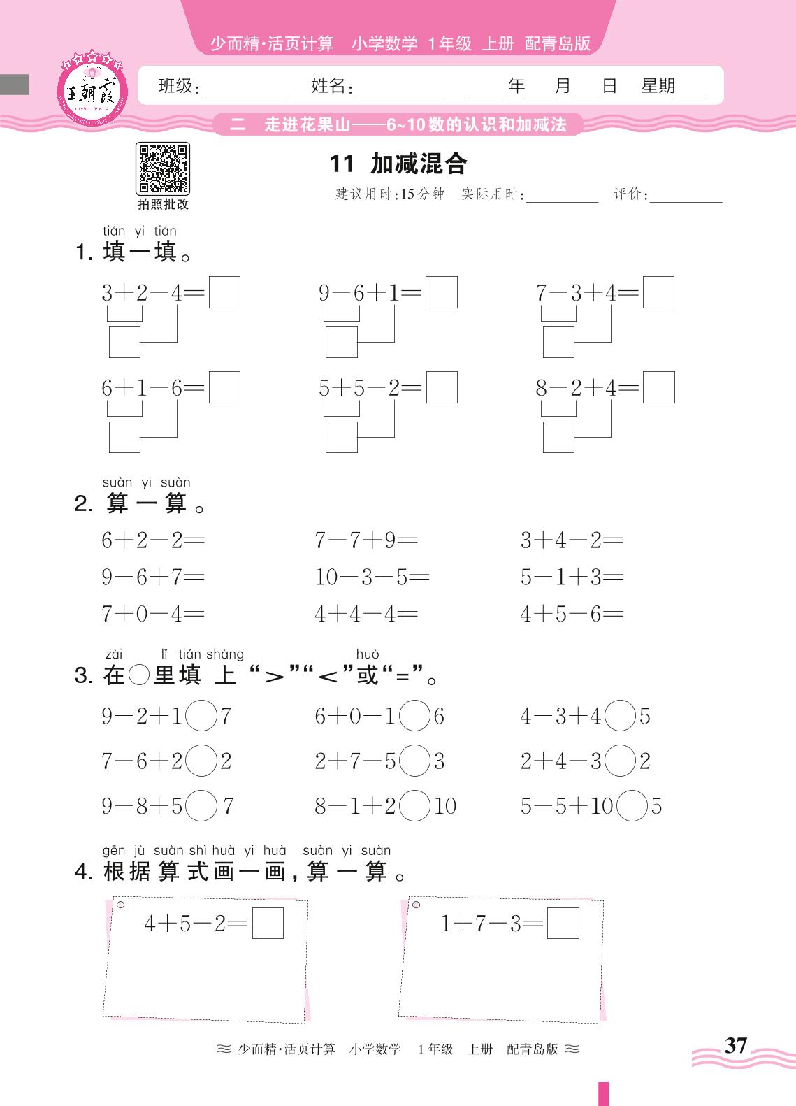 2024秋上册一年级数学青岛版 第二单元 走进花果山(6~10数的认识和加减法)——11. 加减混合