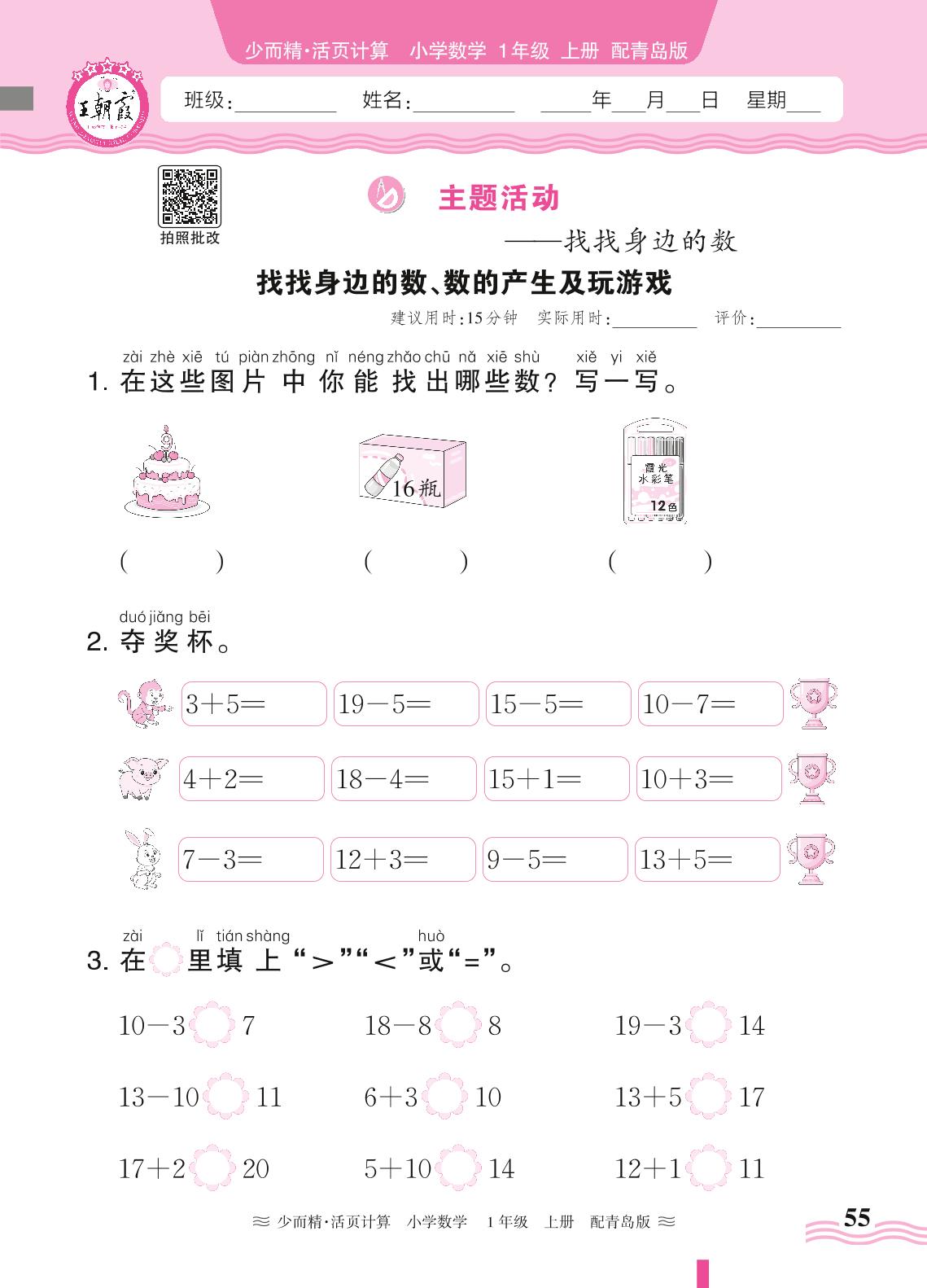 2024秋上册一年级数学青岛版 主题活动(找找身边的数)——找找身边的数、数的产生及玩游戏