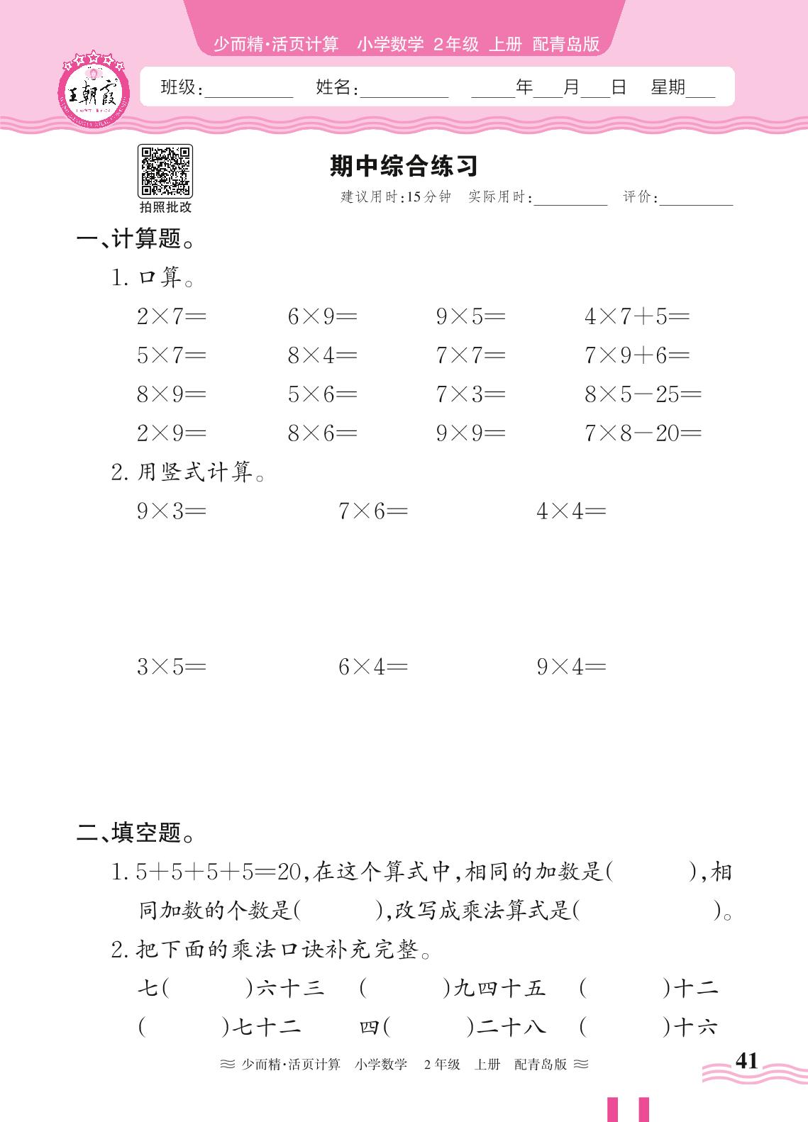 2024秋上册二年级数学青岛版 期中综合练习(计算专练)