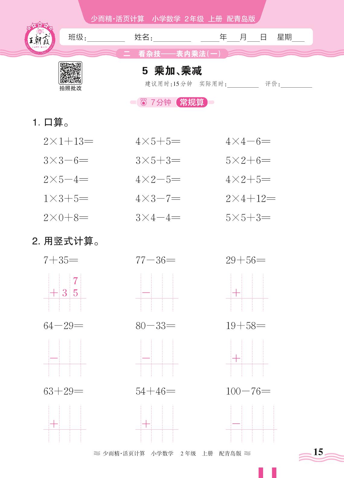 2024秋上册二年级数学青岛版 第二单元 看杂技(表内乘法一)——5. 乘加、乘减