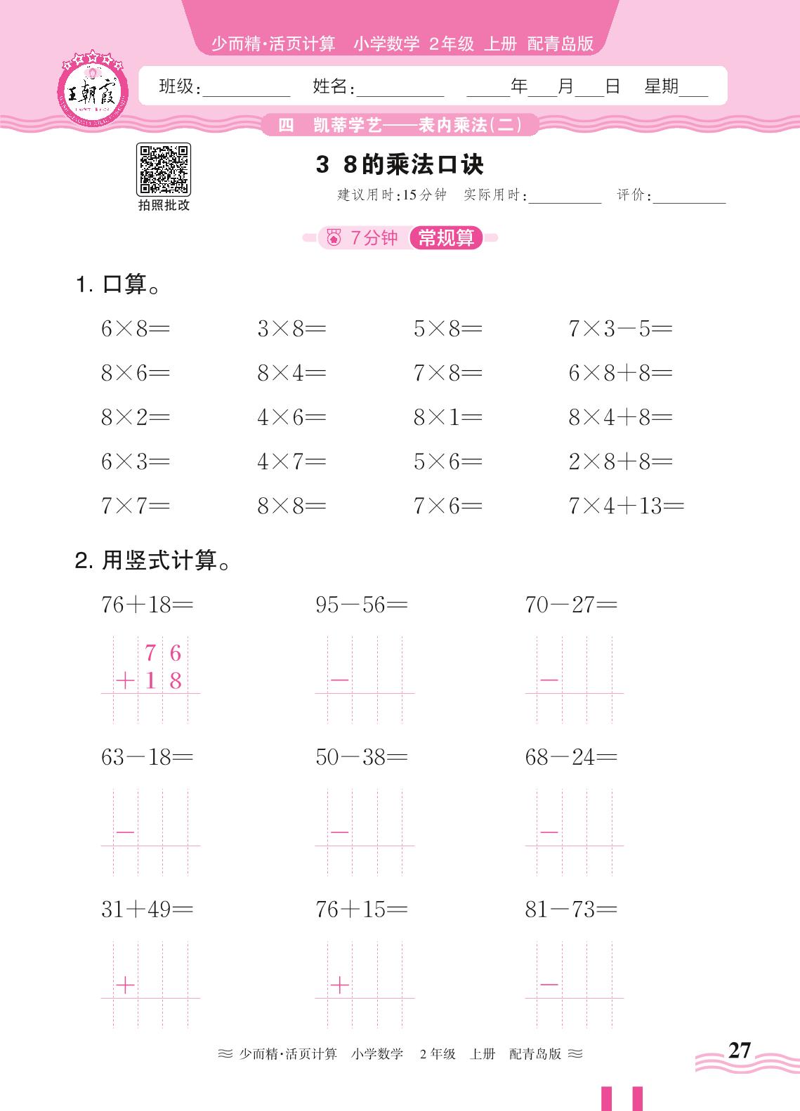 2024秋上册二年级数学青岛版 第四单元 凯蒂学艺(表内乘法二)——3. 8的乘法口诀