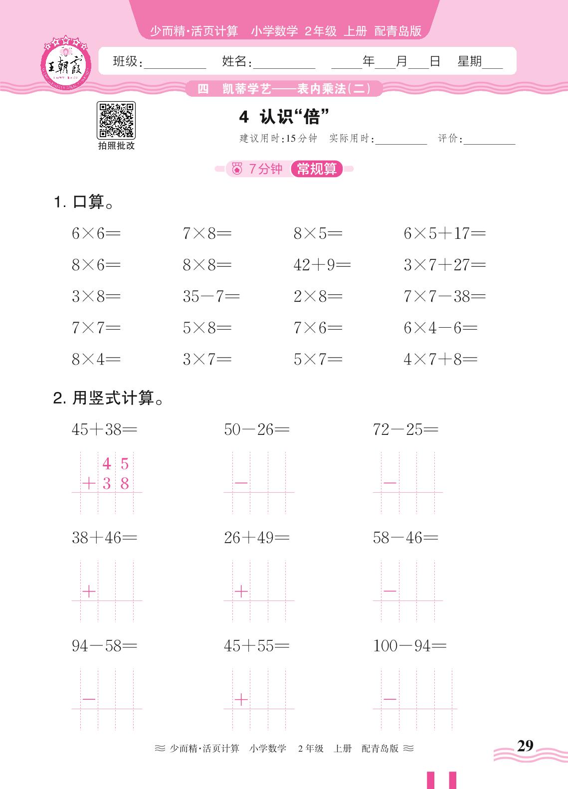 2024秋上册二年级数学青岛版 第四单元 凯蒂学艺(表内乘法二)——4. 认识“倍”