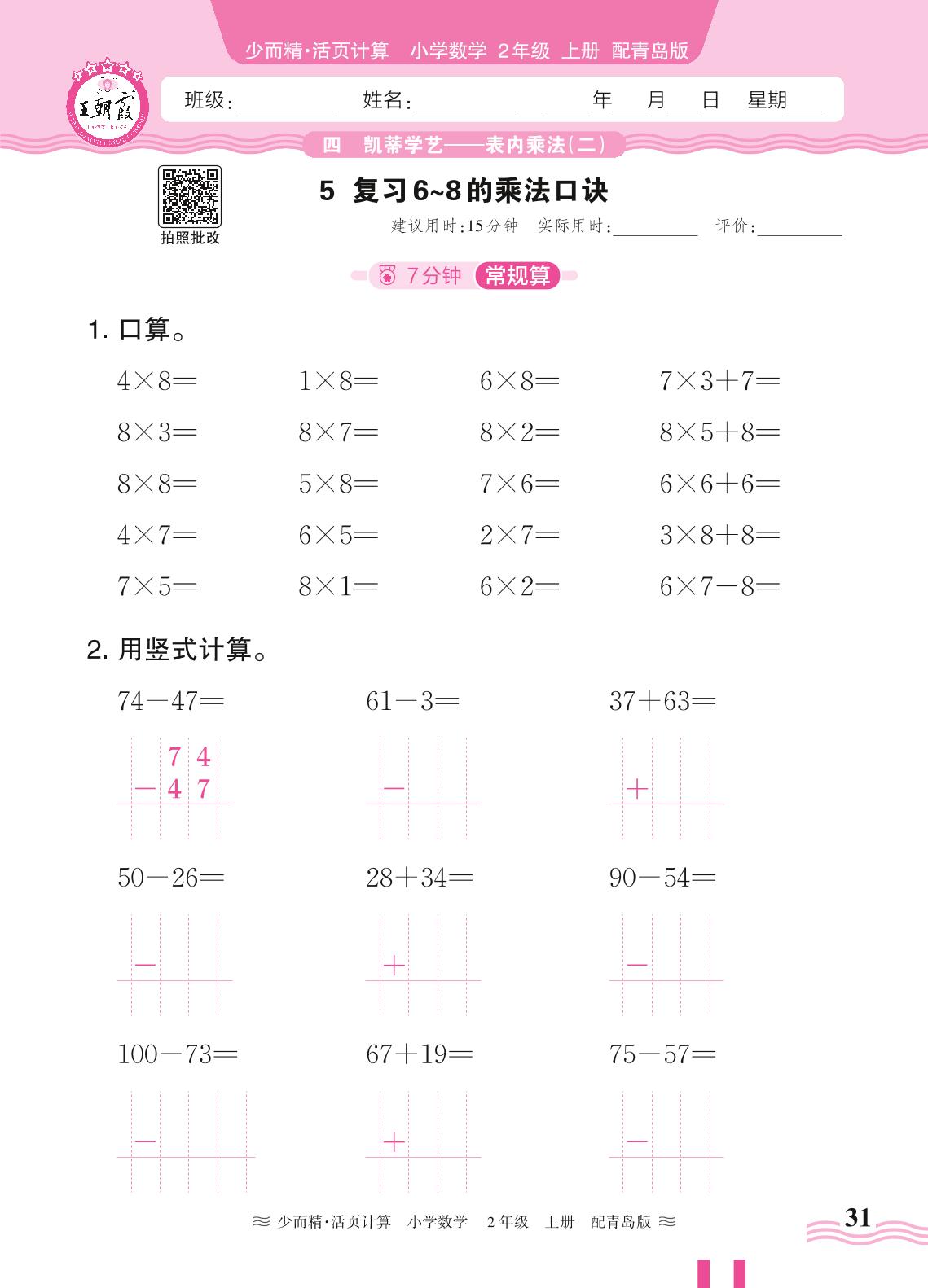 2024秋上册二年级数学青岛版 第四单元 凯蒂学艺(表内乘法二)——5. 复习6~8的乘法口诀