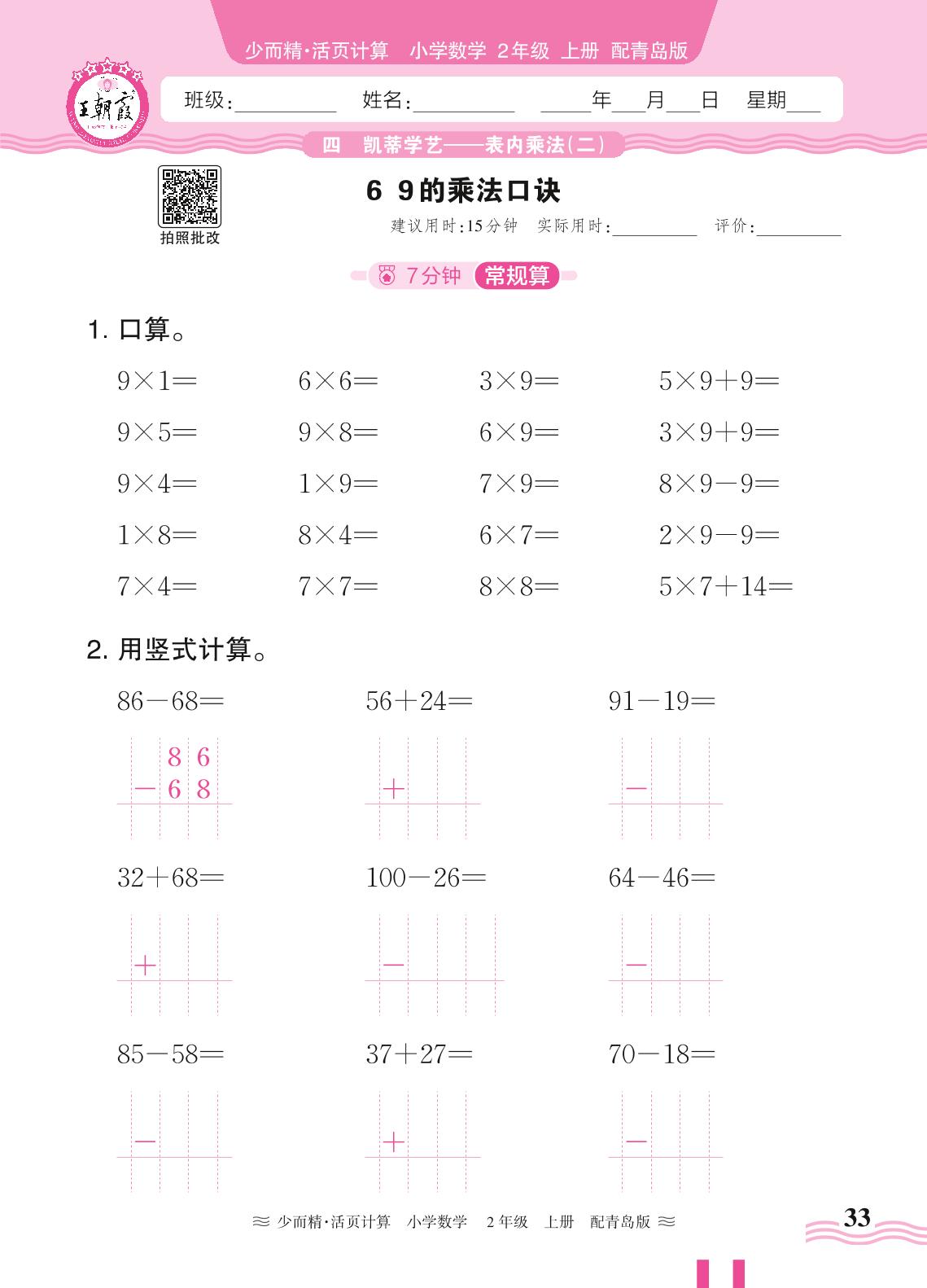 2024秋上册二年级数学青岛版 第四单元 凯蒂学艺(表内乘法二)——6. 9的乘法口诀