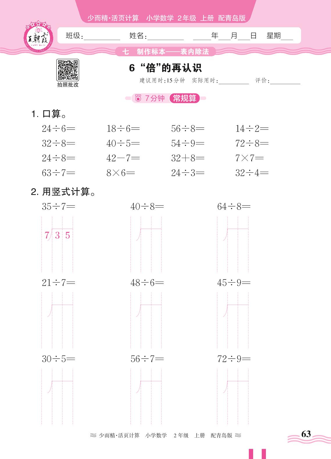 2024秋上册二年级数学青岛版 第七单元 制作标本(表内除法)——6. “倍”的再认识