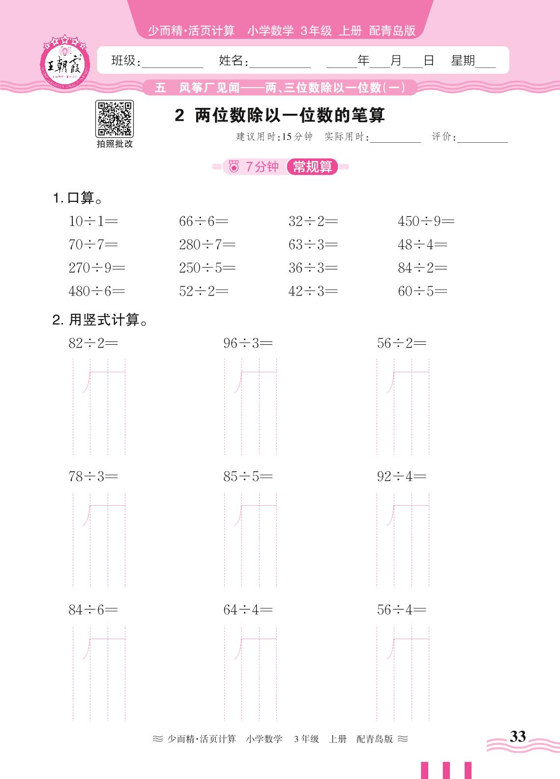 2024秋上册三年级数学青岛版 第五单元 风筝厂见闻(两、三位数除以一位数)——2. 两位数除以一位数的笔算