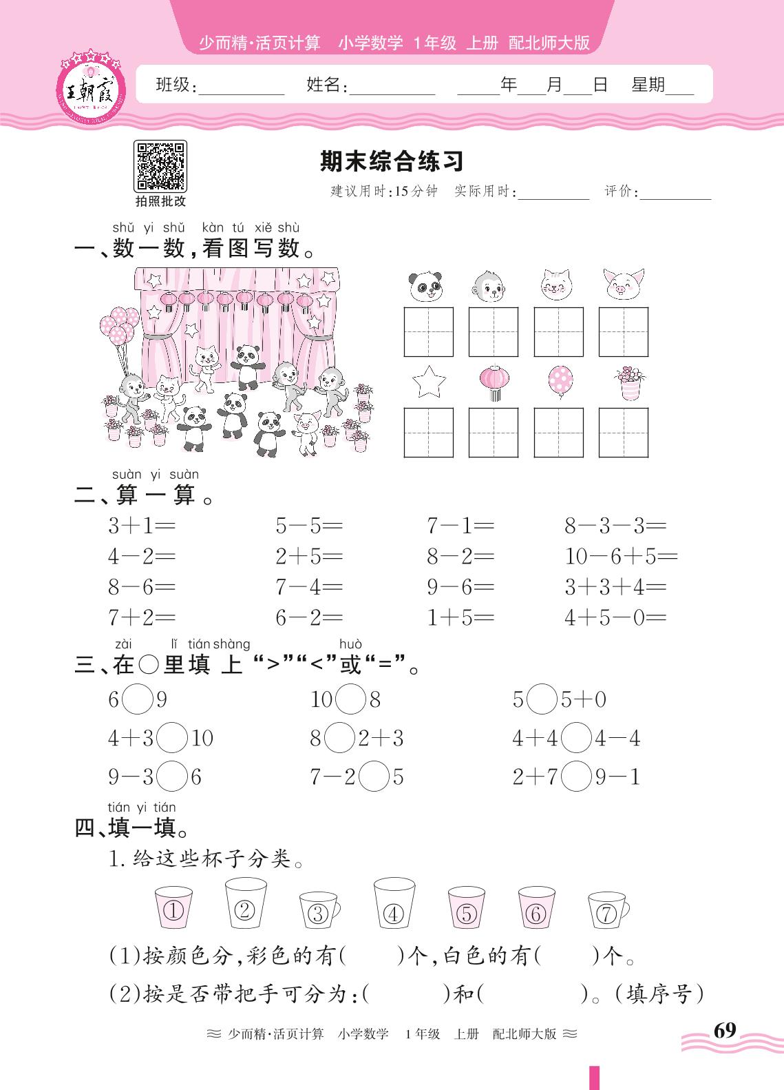 2024秋上册一年级数学北师版 期末综合练习(计算专练)