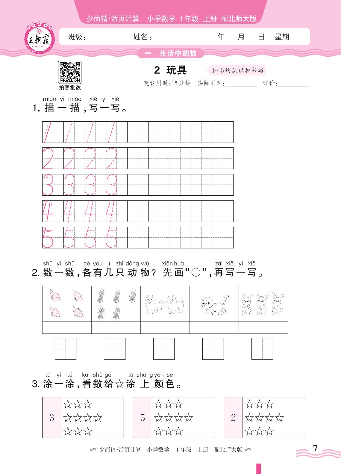 2024秋上册一年级数学北师版 第一单元 生活中的数——2. 玩具