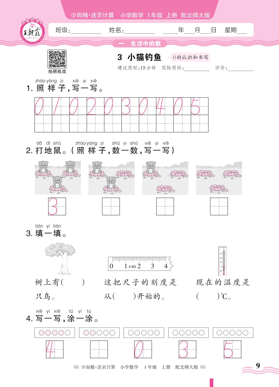 2024秋上册一年级数学北师版 第一单元 生活中的数——3. 小猫钓鱼