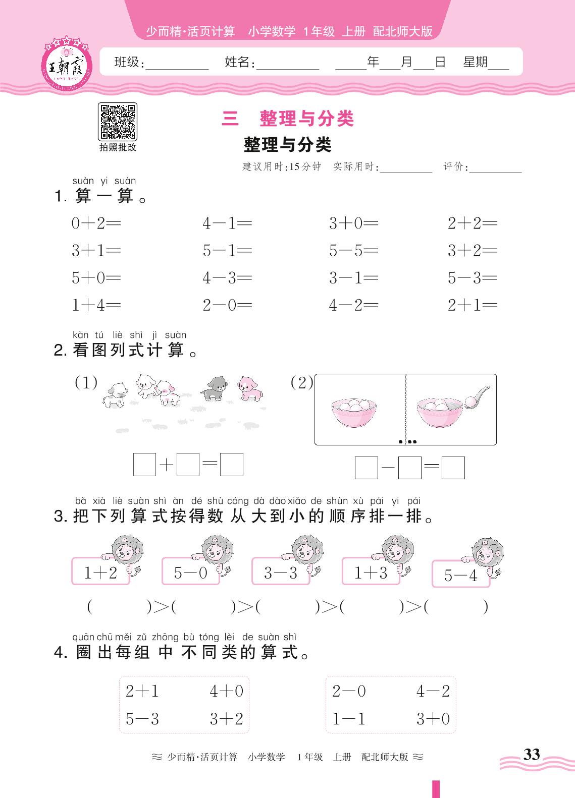 2024秋上册一年级数学北师版 第三单元 整理与分类——整理与分类