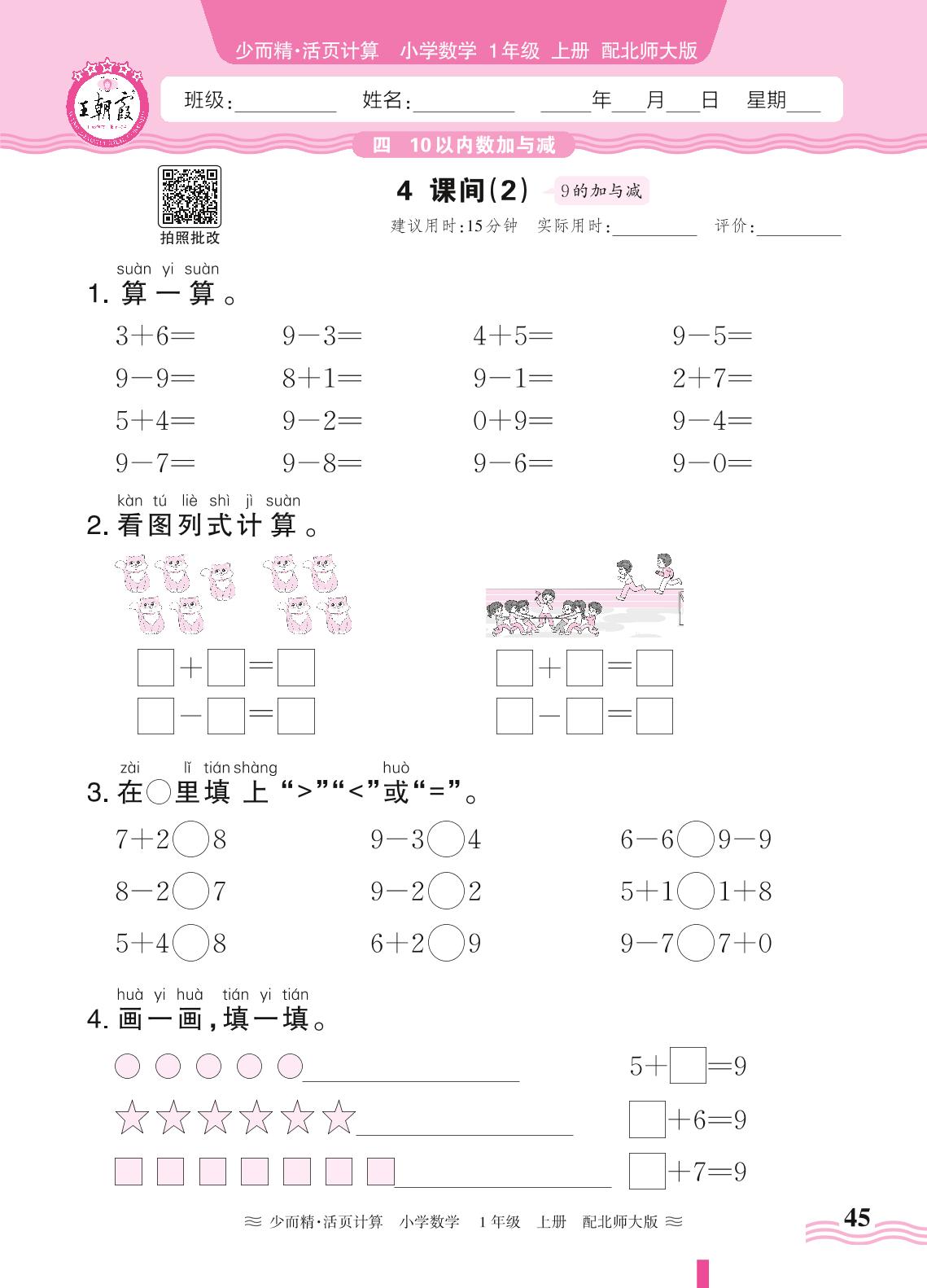 2024秋上册一年级数学北师版 第四单元 10以内数加与减——4. 课间(2)_R240819093325057