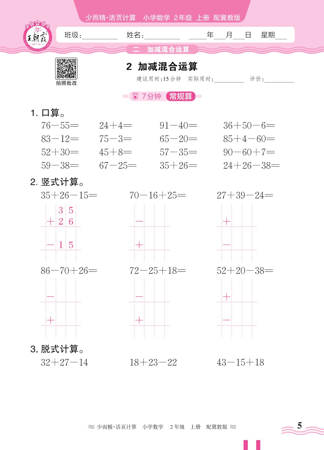 2024秋上册二年级数学冀教版 第二单元 加减混合运算——2. 加减混合运算_R240819093755968