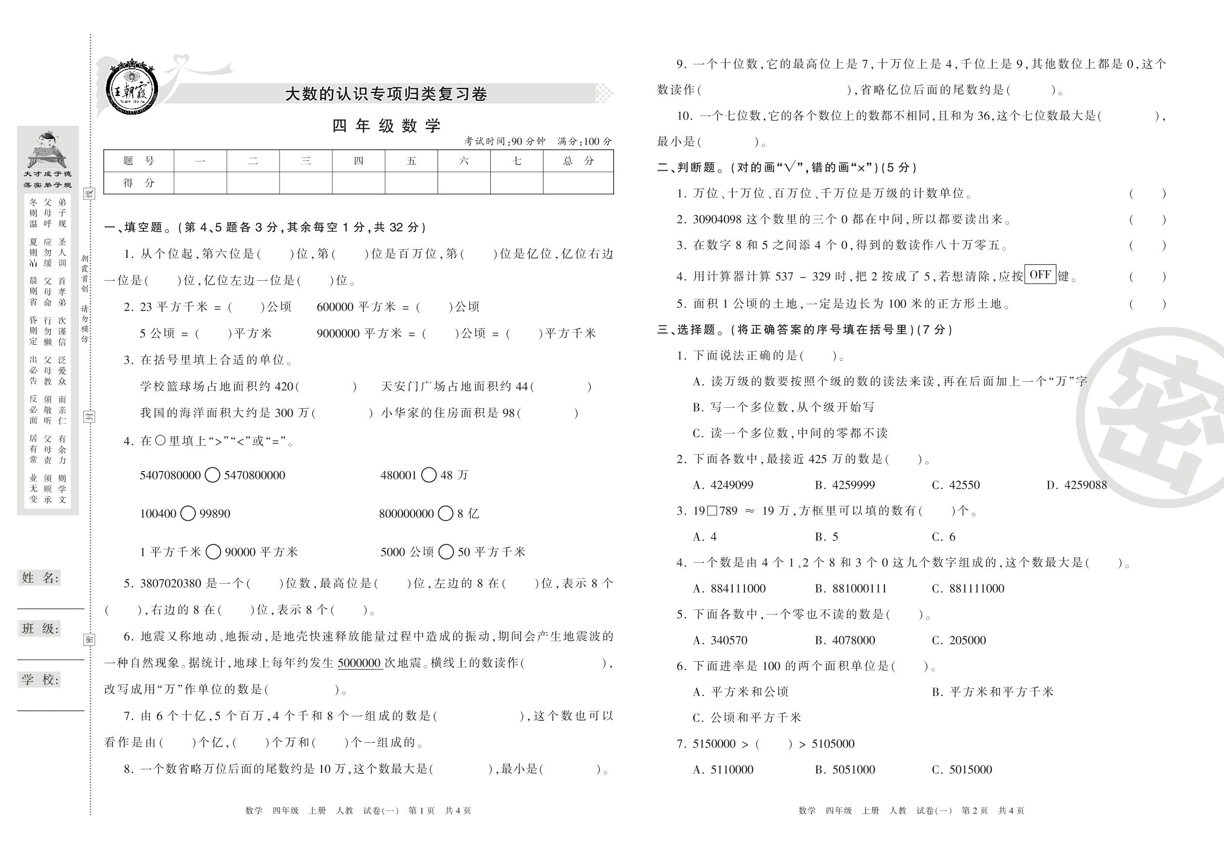 王朝霞期末专项卷四年级上册数学(人教版)_R210804154352【1】