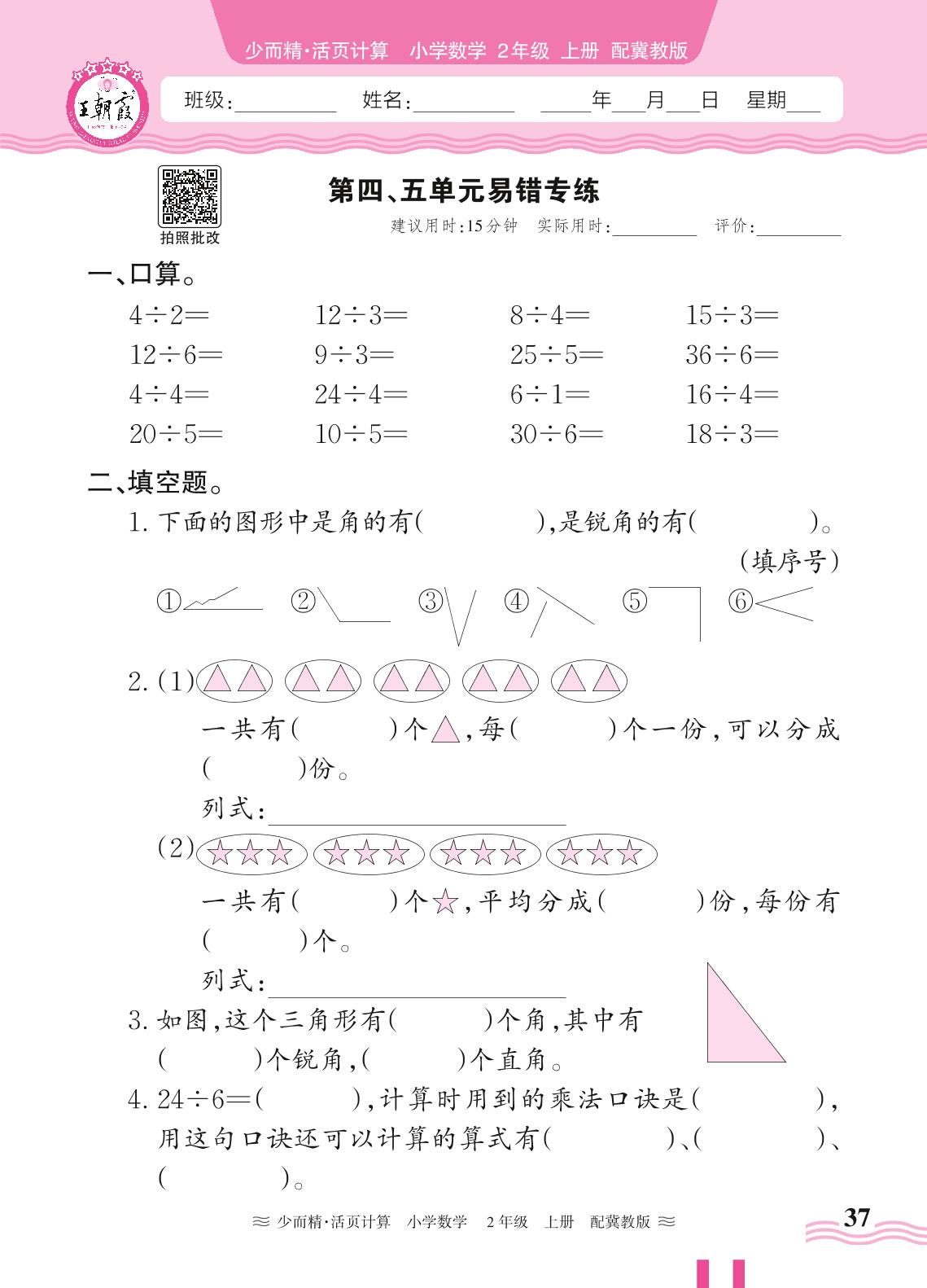 2024秋上册二年级数学冀教版 第四、五单元易错专练