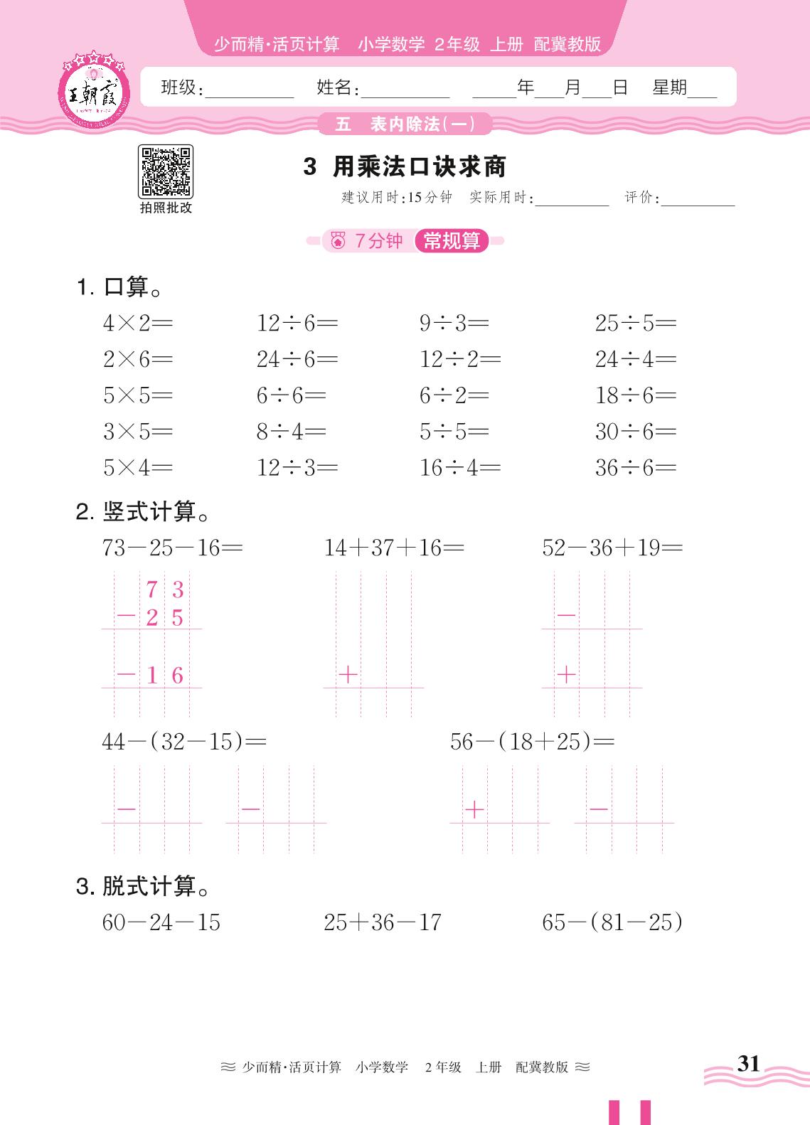 2024秋上册二年级数学冀教版 第五单元 表内除法(一)——3. 用乘法口诀求商